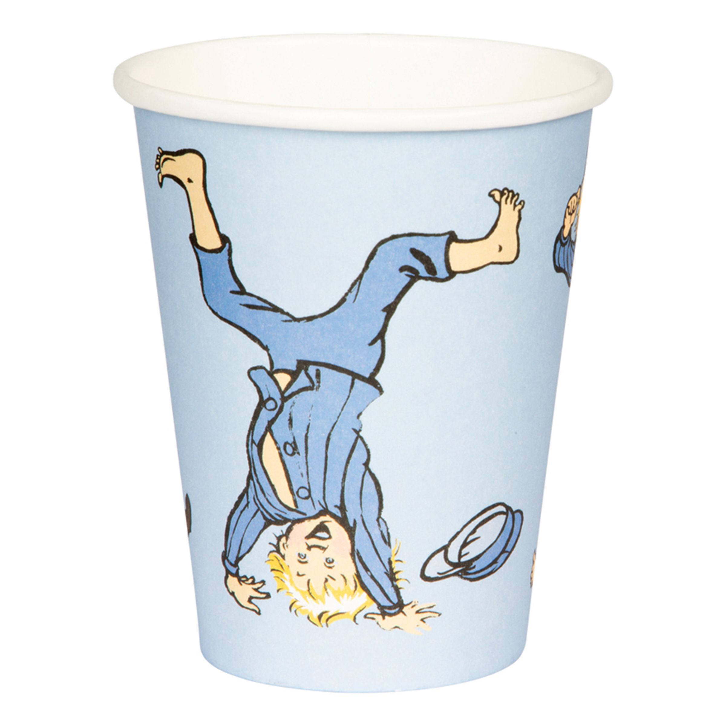 Pappersmuggar Emil i Lönneberga innehåller 8 stycken pappersmuggar som alla rymmer 250 ml dryck och pryds av Emil i Lönneberga. En mysig detalj på bordet när det vankas saftkalas!