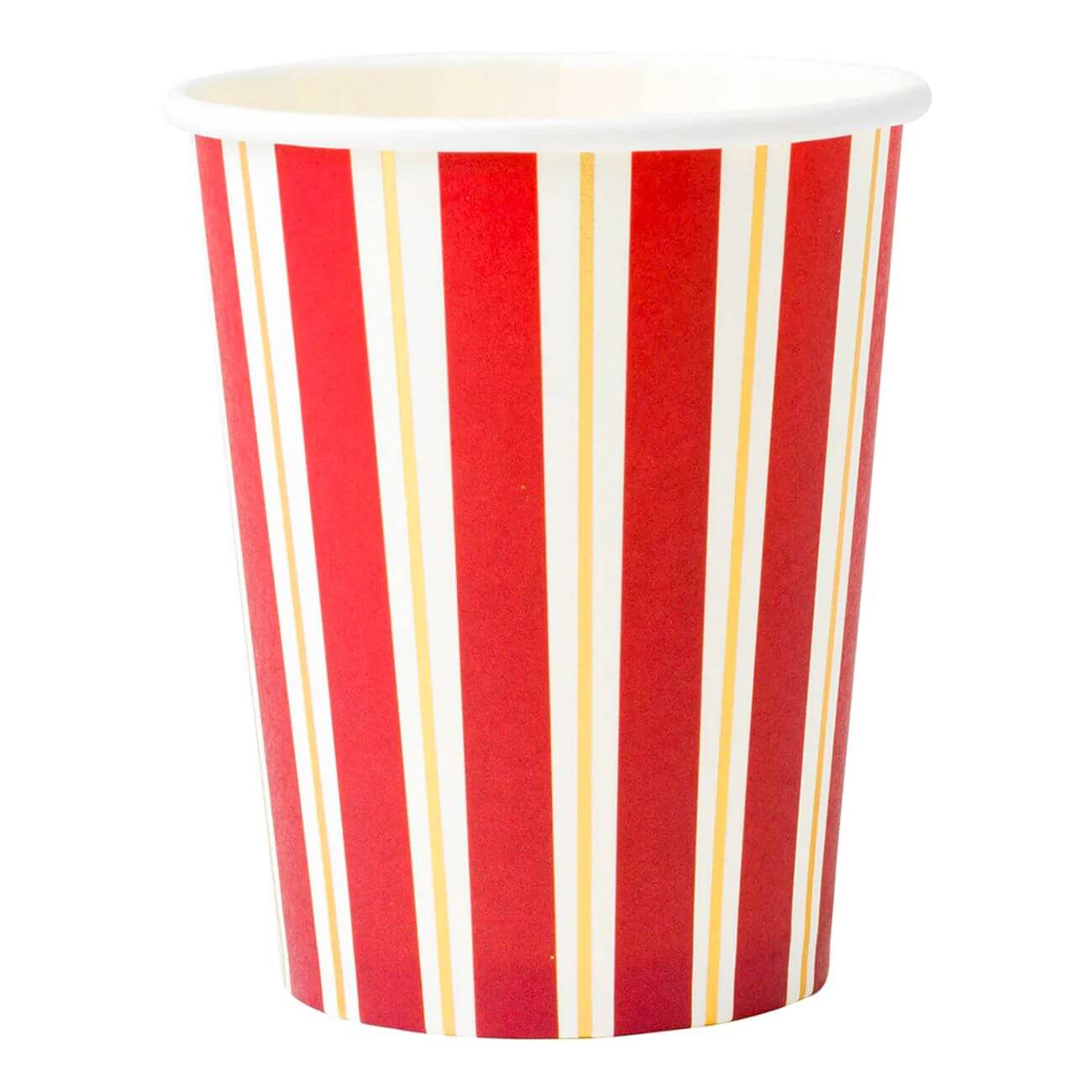 Juliga pappersmuggar i vitt, rött och guld. Servera kaffe i dom och slipp disken, fungerar lika bra till övrid dryck. Matcha gärna med de andra engångsartiklarna i samma serie och umgås med gästerna istället för att ta hand om disken.