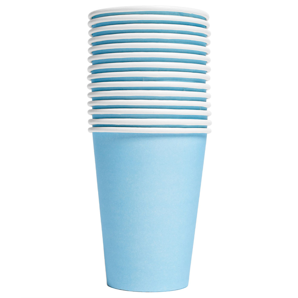 För en perfekt barnkalas- eller födelsedagsfestdukning är ett 14-pack ljusblå engångsmuggar ett måste. Dessa pappersmuggar skapar en festlig atmosfär på varje födelsedagsfest och gör att du slipper tänka på disken.