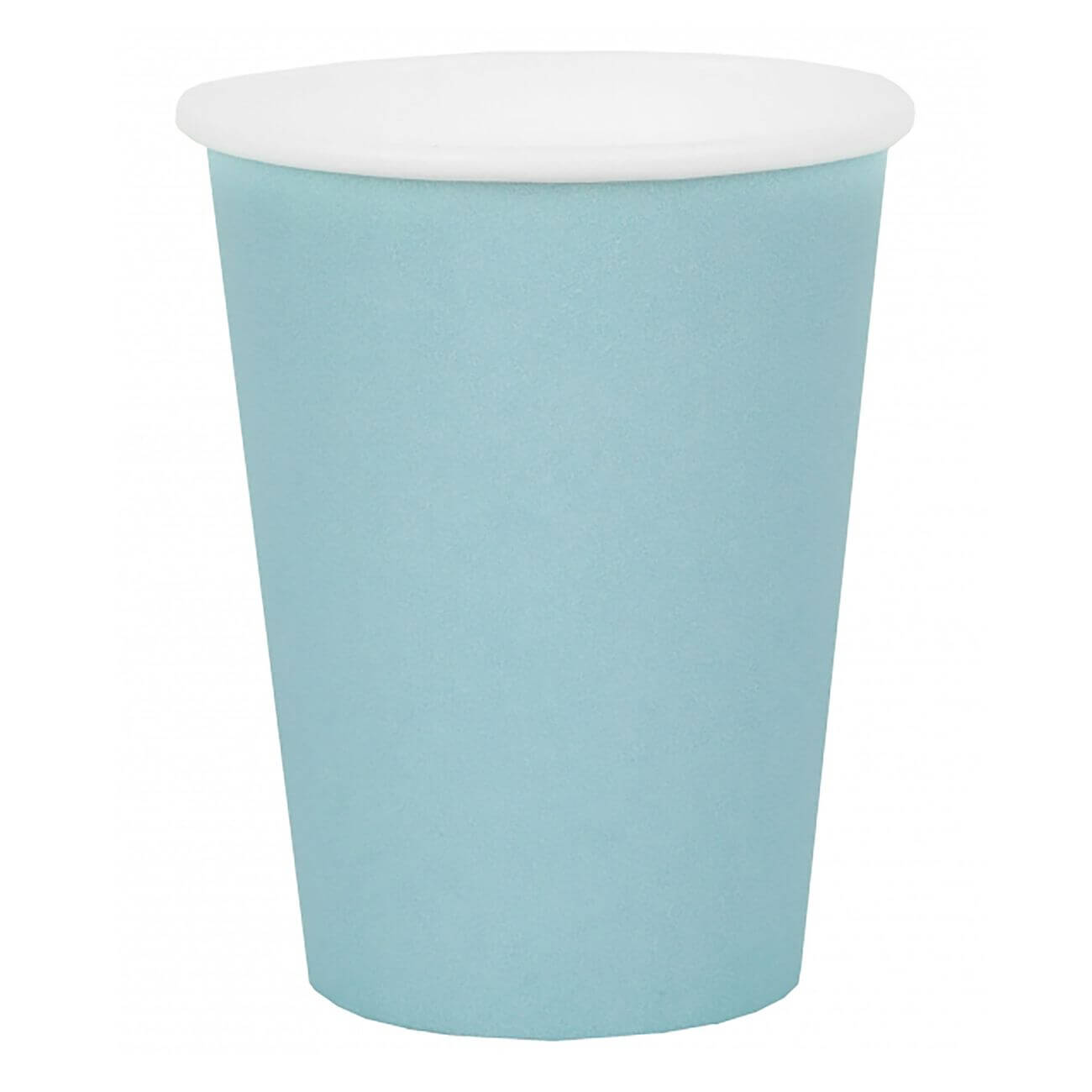 Dessa ljusblå pappersmuggarna passar perfekt till barnkalaset eller festen. Muggarna har matt yta och kommer i 10-pack.