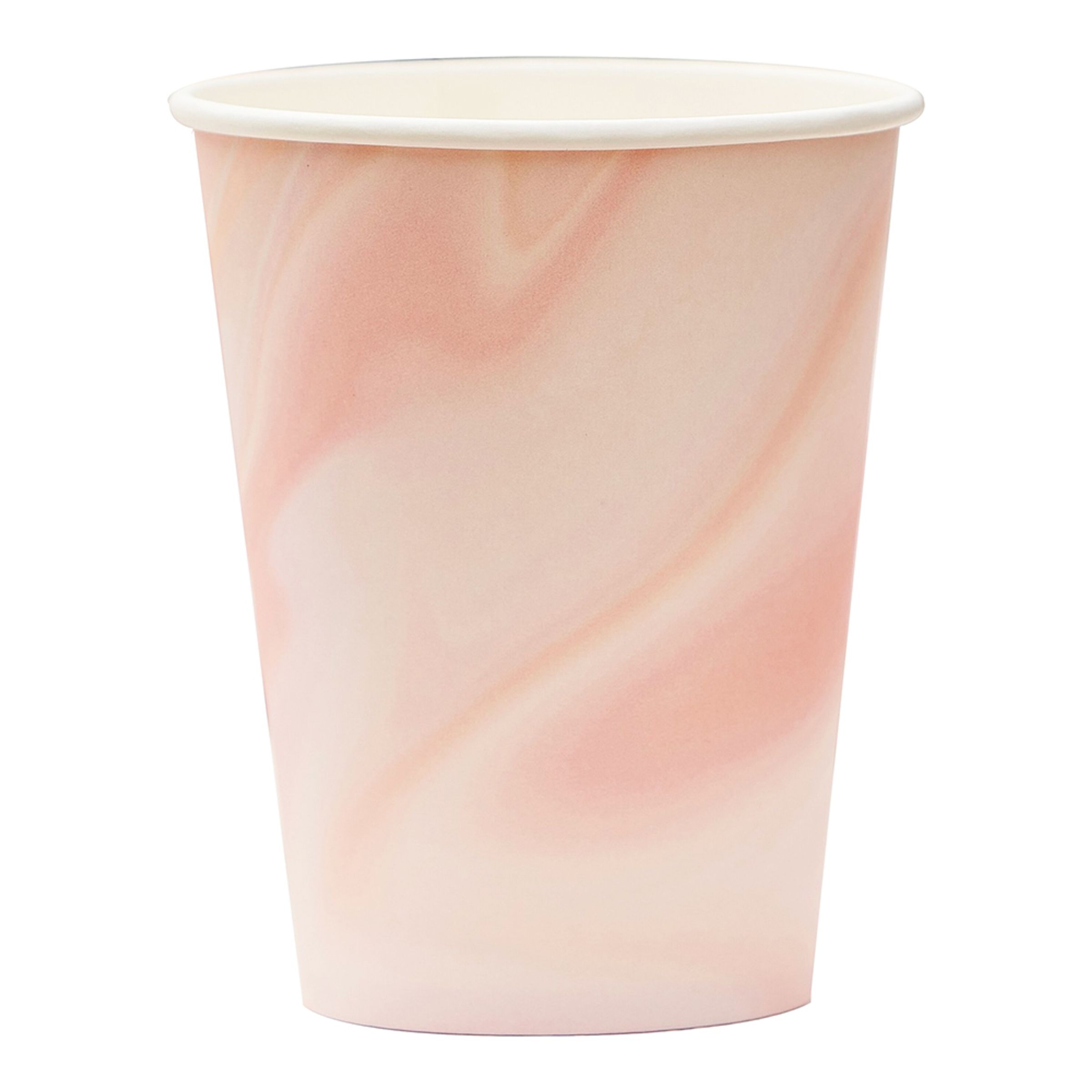 Pappersmuggar Marmor Ljusrosa innehåller 8 stycken muggar. Varje mugg rymmer 25 cl.