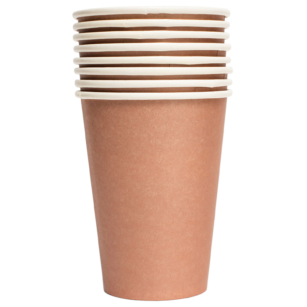 Pappersmuggar Roséguld 21 cl 8-pack består av åtta pappersmuggar i roséguld.