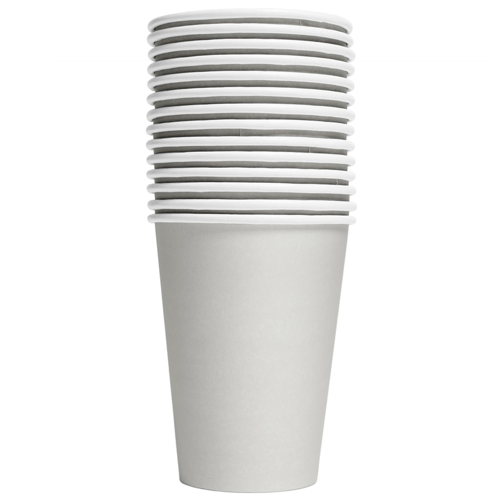 Pappersmuggar Silver 21 cl 14-pack består av fjorton pappersmuggar i silver.