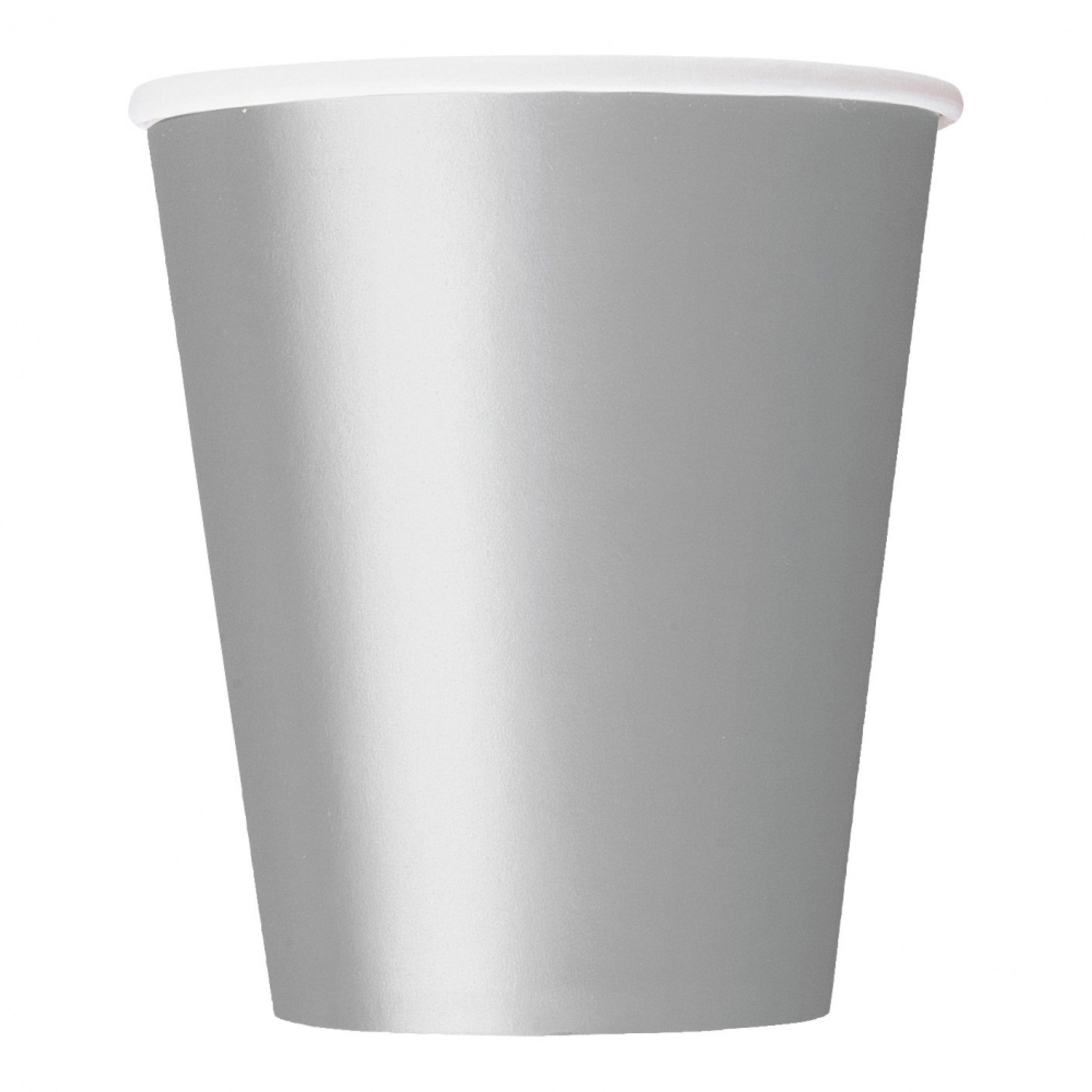 • Snygga, matt silverfärgade pappmuggar med vit insida.
