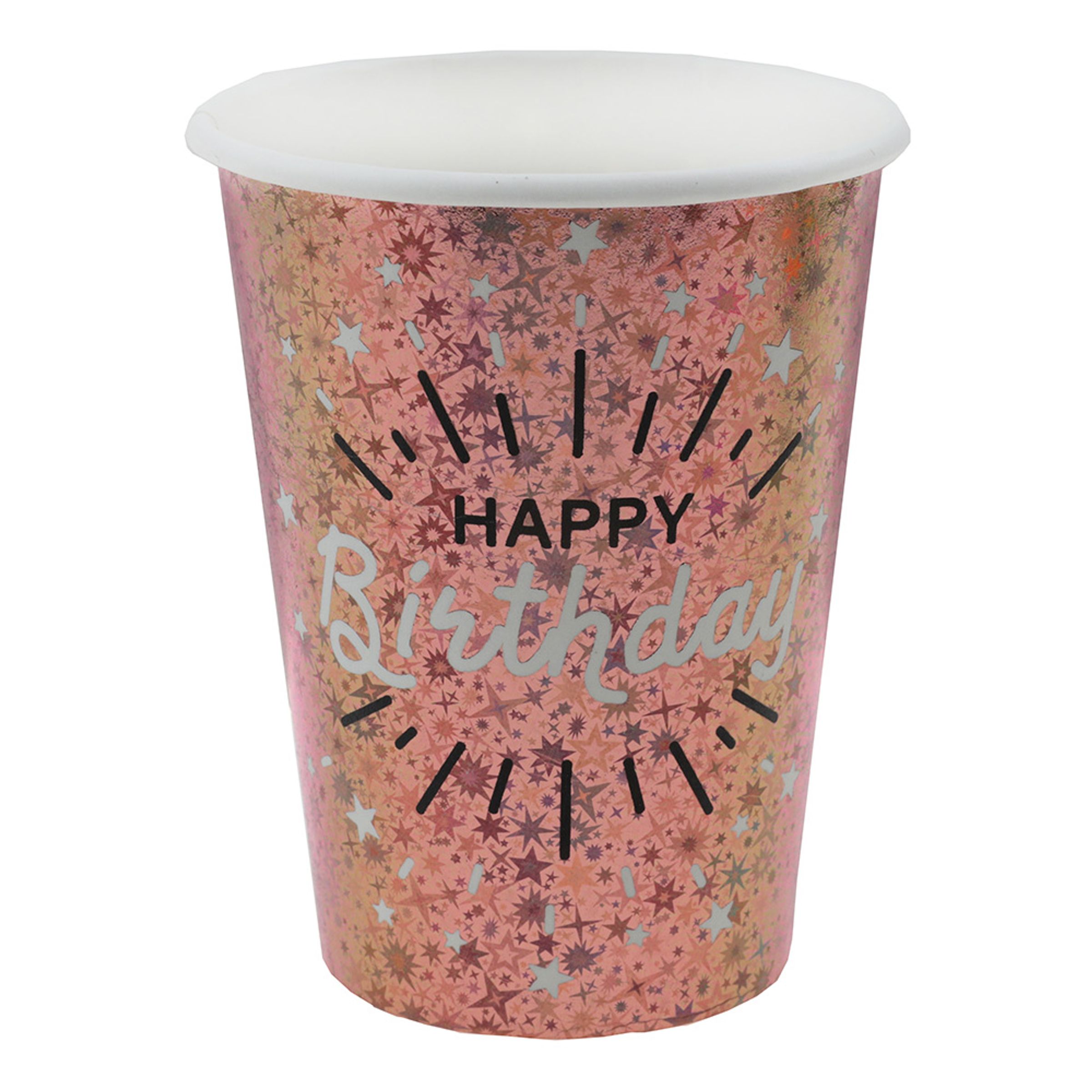 Pappersmuggar Sparkling Happy Birthday Roséguld – 10-pack