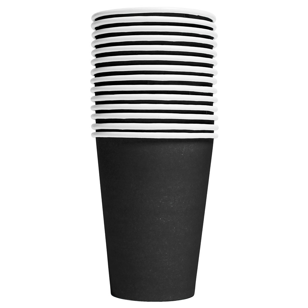 Pappersmuggar Svart 21 cl 14-pack består av fjorton pappersmuggar i svart.