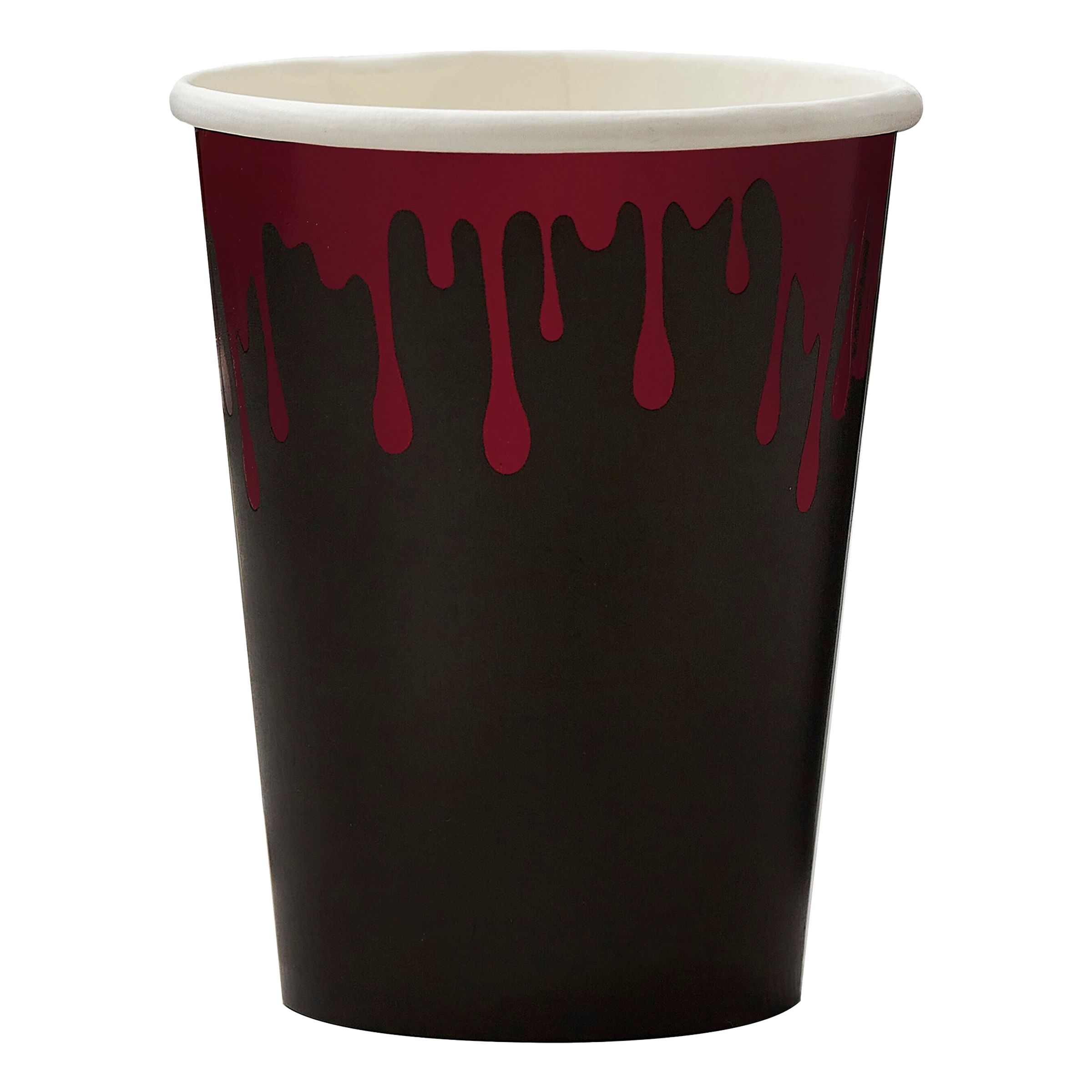 Pappersmuggar Svarta med Rinnande Blod innehåller 8 stycken bloddrypande pappersmuggar som samtliga mäter 16 x 16 cm. En ruskig detalj på halloweenfesten som garanterat kommer få stämningen klädsamt otäck!
