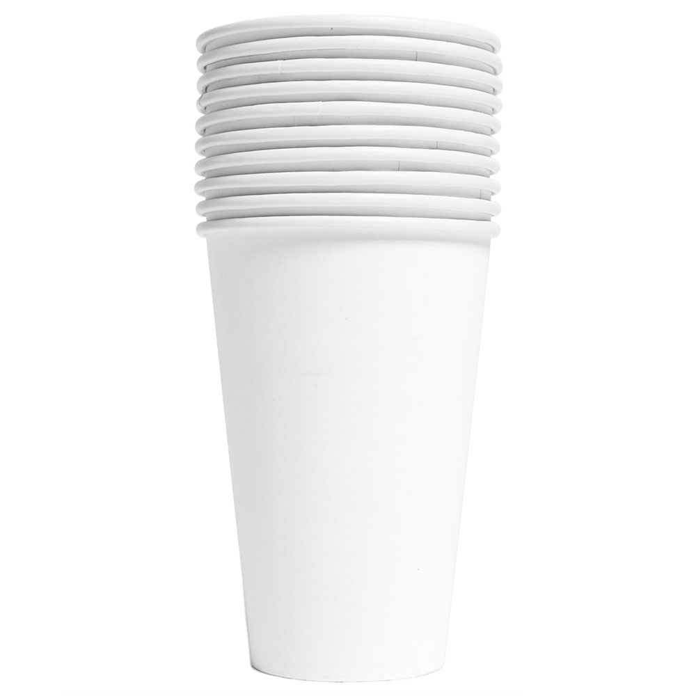 Pappersmuggar Vit 35 cl 10-pack består av tio pappersmuggar i vit.