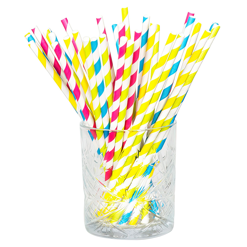 Dessa randiga papperssugrör kommer i flera olika färger och kan passa in på vilken fest som helst. Det hjälper om temat på festen är precis lika färgglatt som dessa sugrör. Papperssugrör är bra för miljön då dom är lättare att återanvända än plast. Så efter festen behöver du inte tänka så mycket utan bara städa upp och slänga dom.