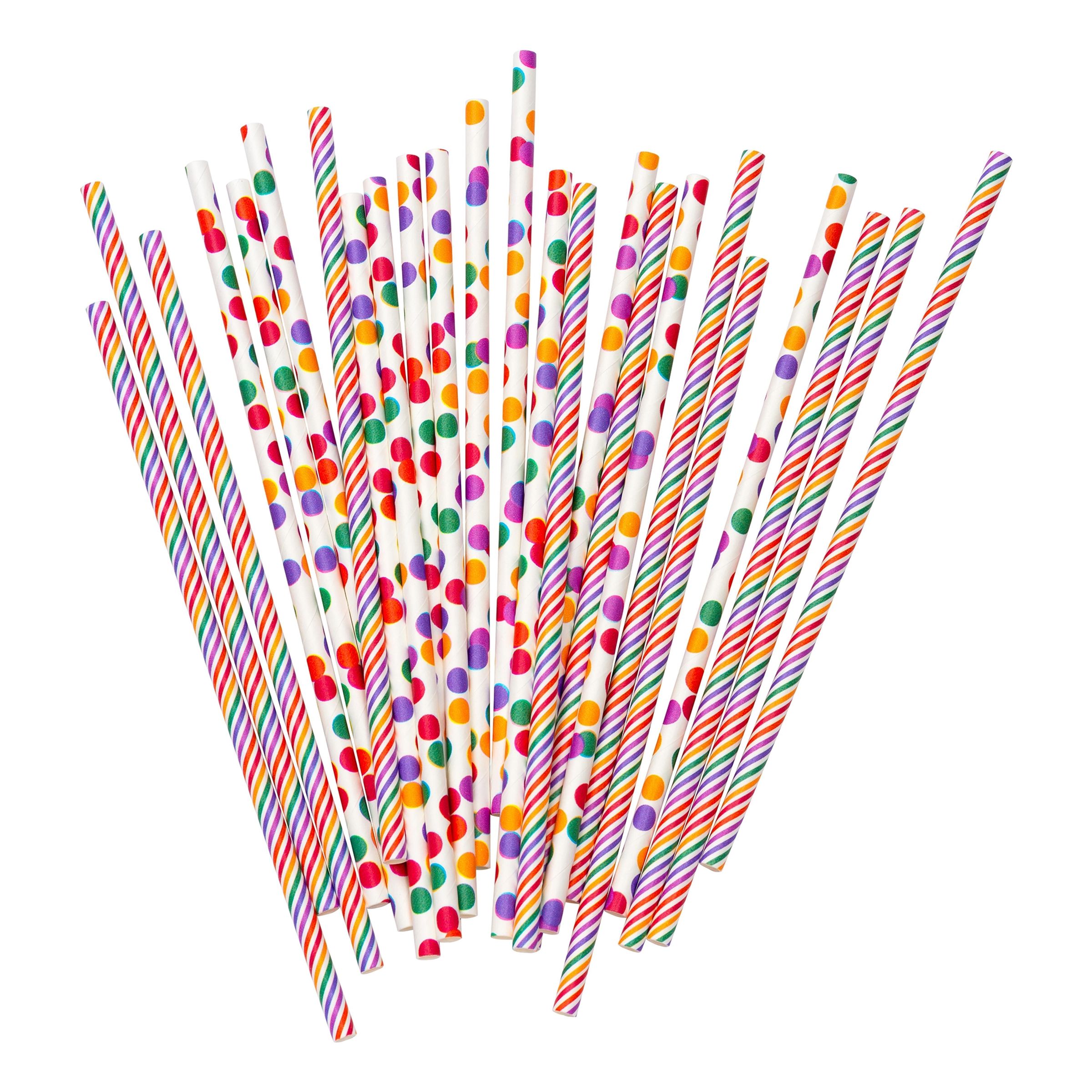 Vad är ett kalas om inte en karusell av läckra färger? Ladda upp med de här fantastiska papperssugrören till nästa födelsedagsfirande och ge dukningen en välgörande färgklick!