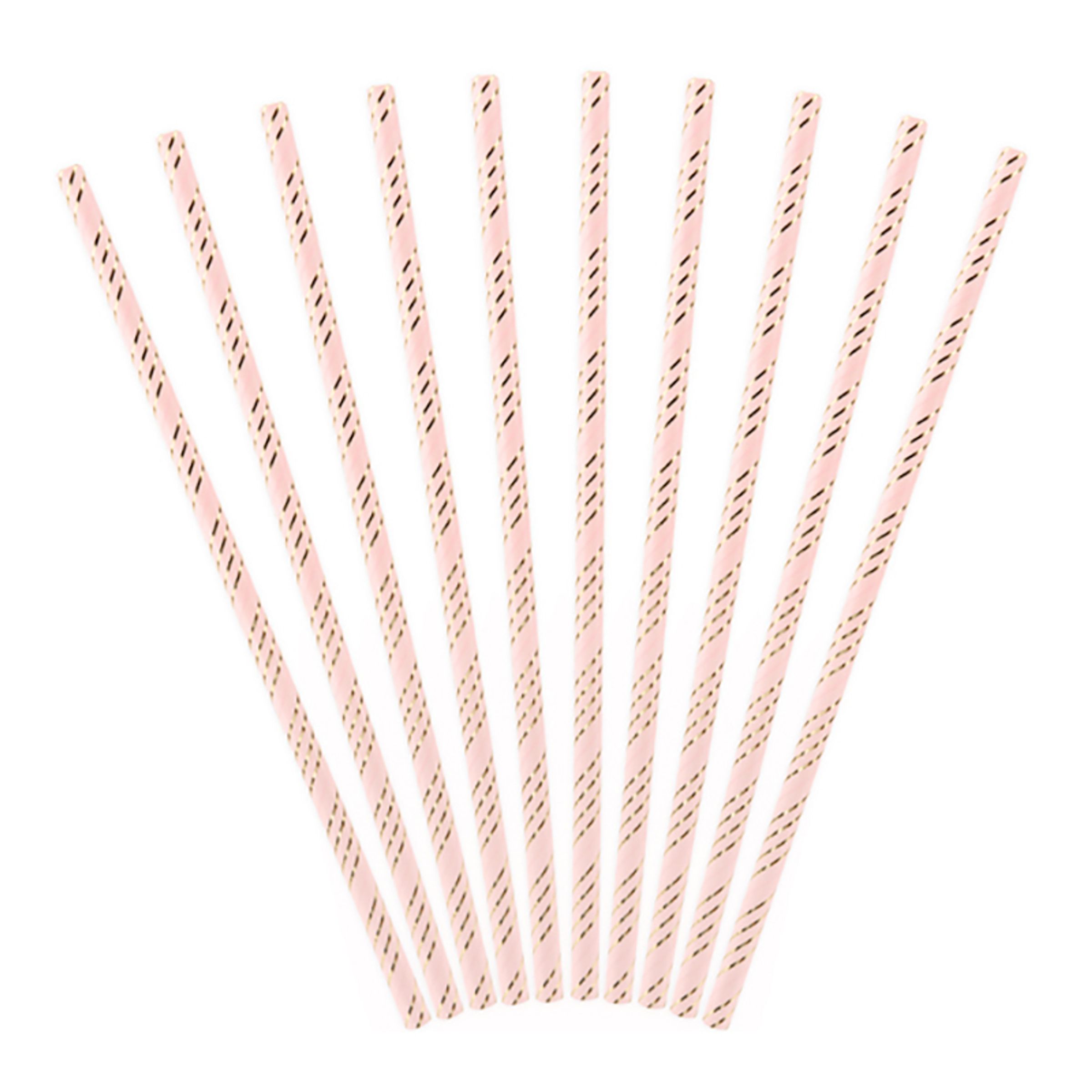 Alla kalas och babyshower-firanden kräver sugrör – i mängder! Här får du tio stycken råsnygga, rosaguldiga sugrör i papp som garanterat höjer nivån på dukningen.