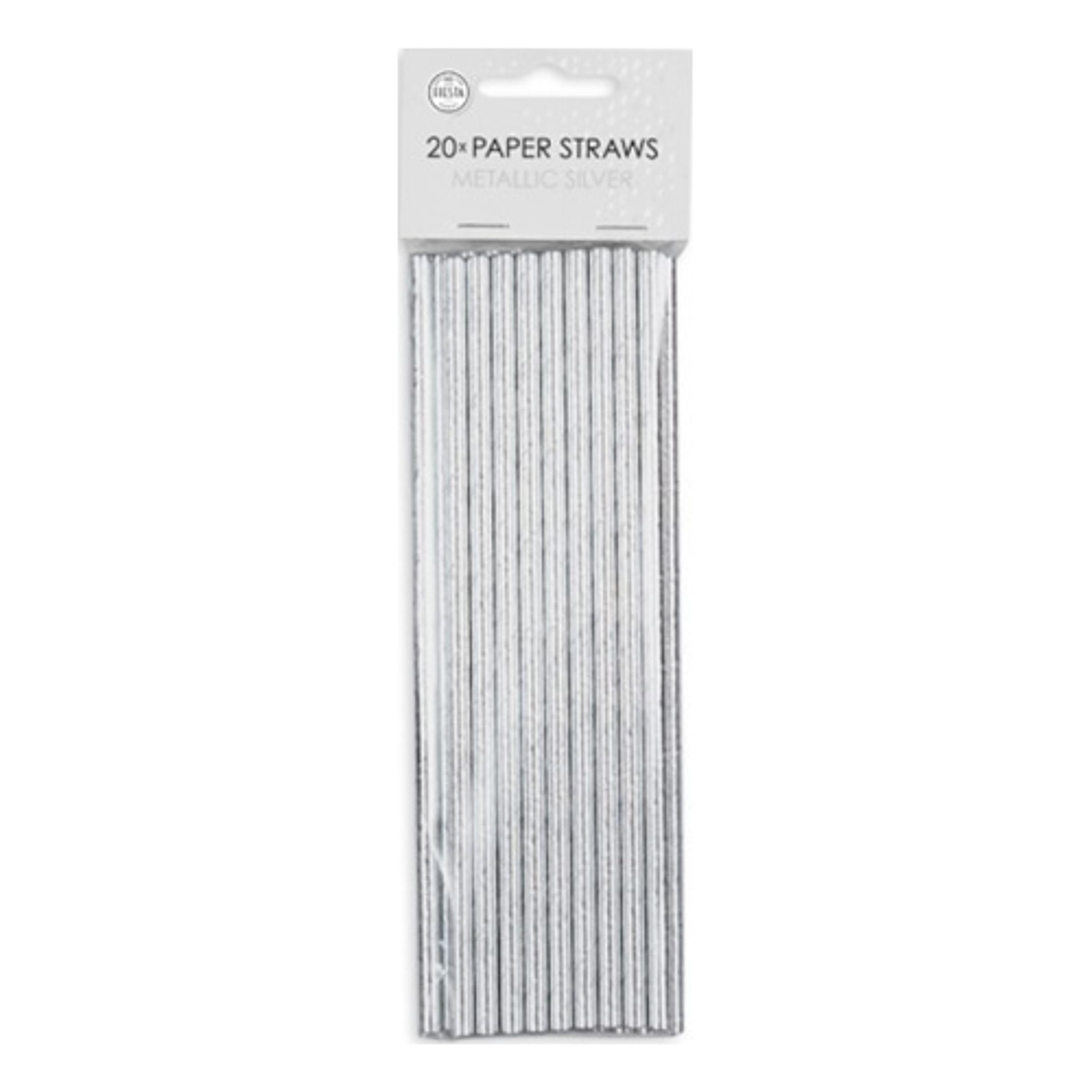 Papperssugrör Silvermetallic inkluderar 20 stycken sugrör i papp. Sugrören är silverfärgade med en metallic yta och de är 6 mm x 19,7 cm stora.