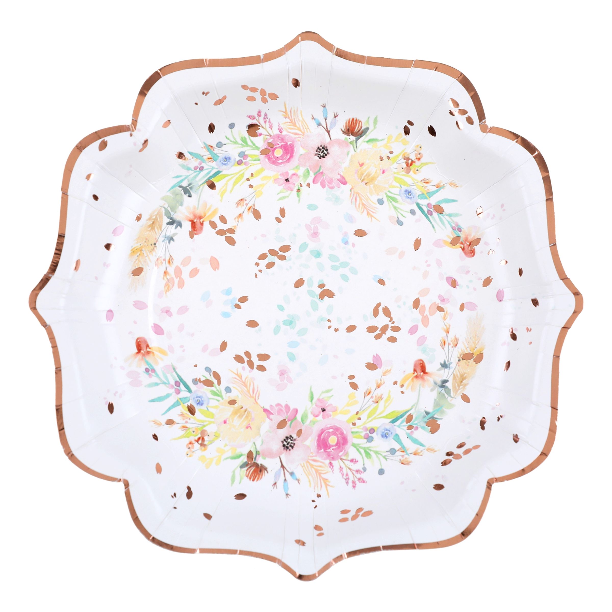 Papperstallrikar Blomster är engångstallrikar med en läcker form fylld med blomster. Supersnygga på det uppdukade kalasbordet. Passar lika bra till den enkla picknicken som till bröllopsfesten eller midsommar!