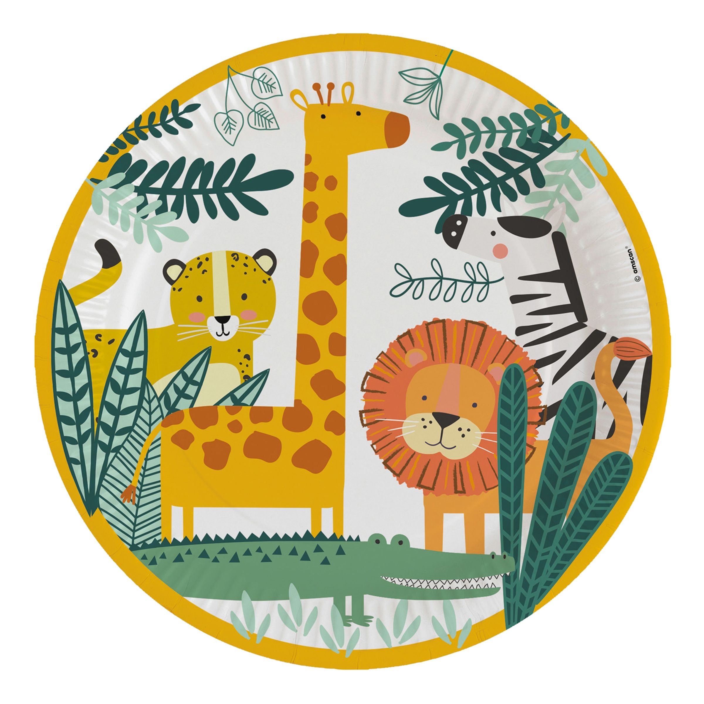 Papperstallrikar Djungeldjur inkluderar åtta stycken engångstallrikar som kommer med motiv föreställande olika safari-djur/djungeldjur. Matcha gärna med annan dukning ur samma djungeldjur-serie!