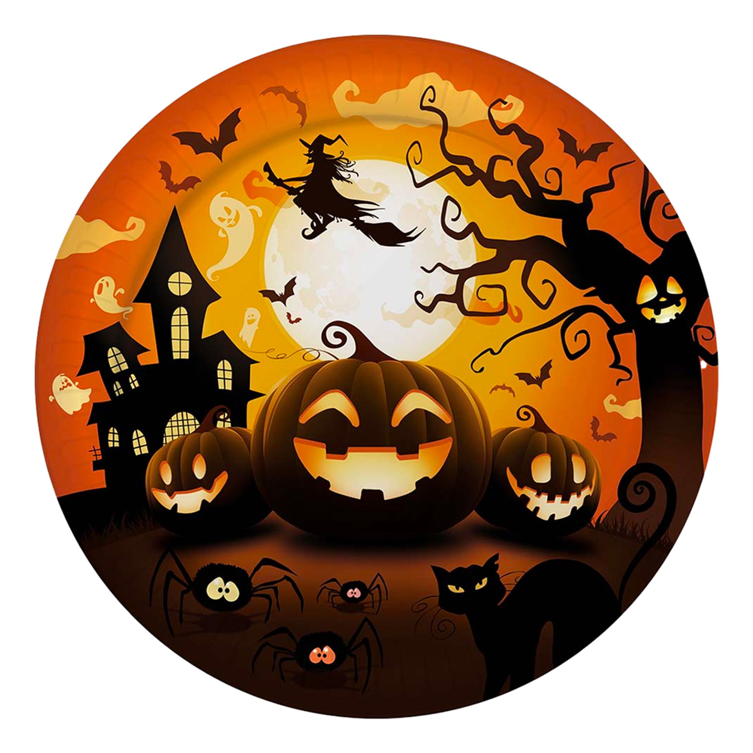Papperstallrikar Halloweenpumpa innehåller 6 stycken häftiga tallrikar med lagom läskiga halloweenmotiv. Tallrikarna mäter 23 cm och kommer garanterat maxa stämningen på kalaset!
