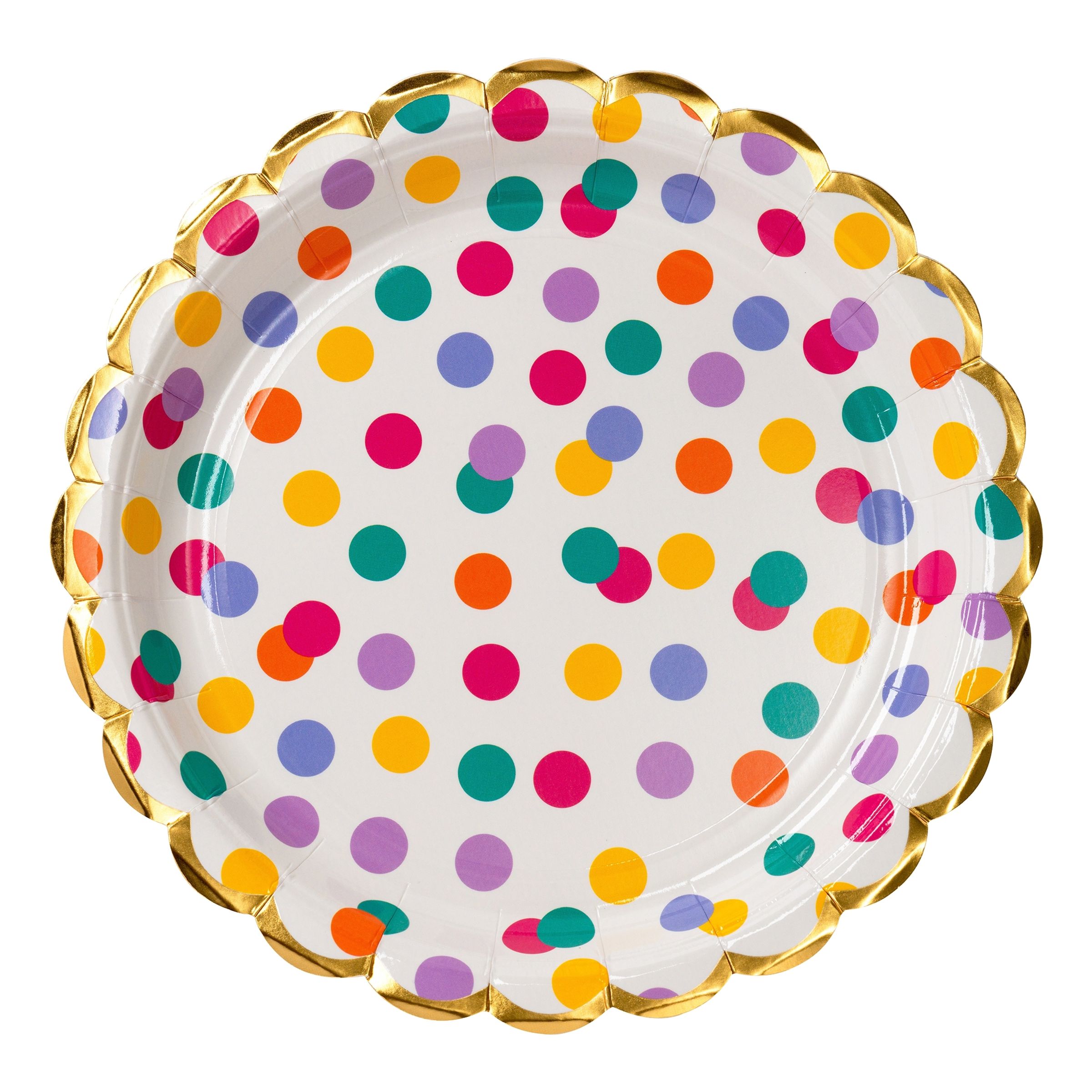 Konfettiprydda papperstallrikar som sprider kalasstämning i hela rummet! Ett givet val av tallrik att duka upp med vare sig kalaset är för vuxna eller barn – och du vill slippa ett berg av disk.