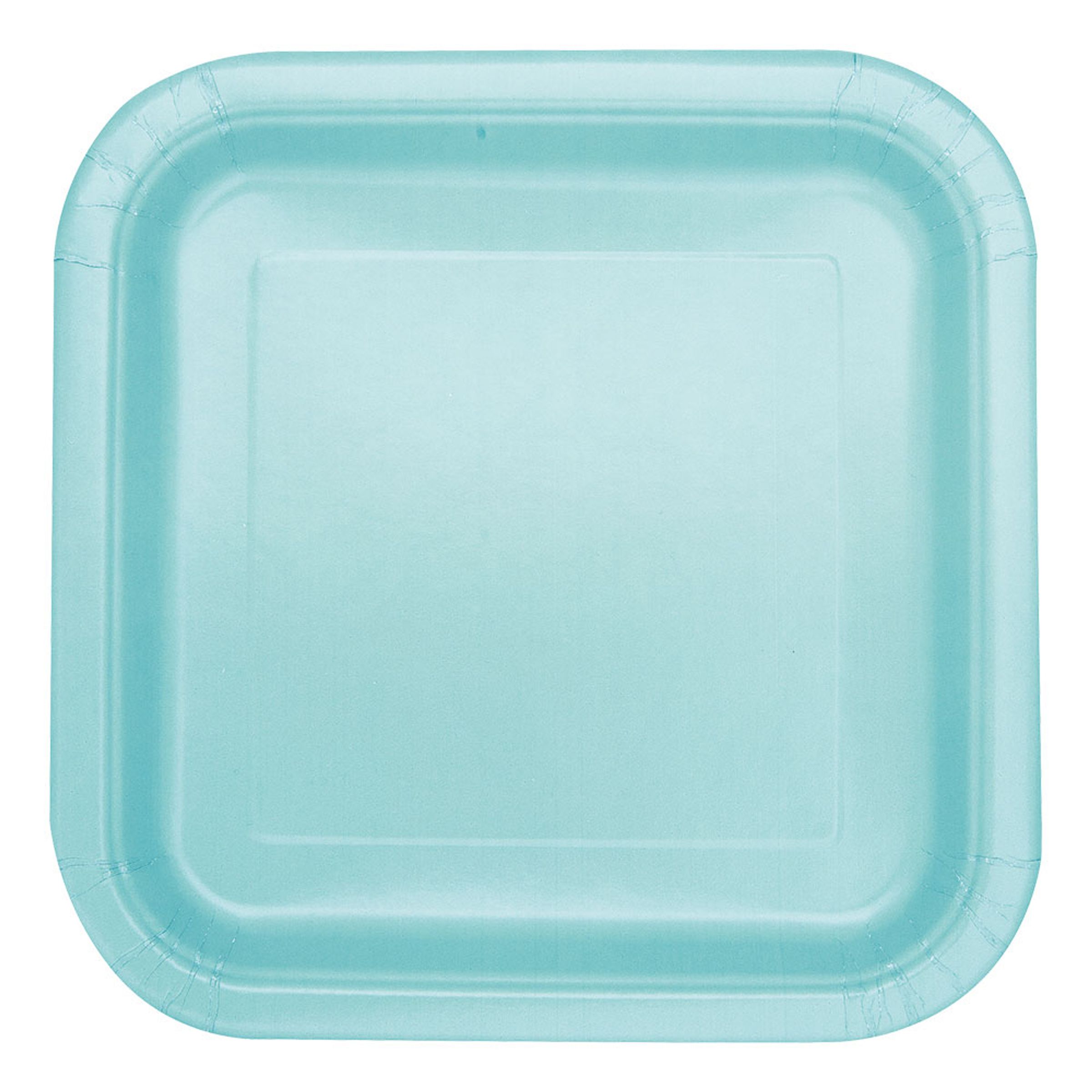 Papperstallrikar Kvadrat Mint är 14 stycken fyrkantiga tallrikar på ungefär 23 cm som är tillverkade i papp i färgen mint. Kombinera gärna med andra produkter i samma färg eller bryt av med till exempel servetter och ballonger i en helt annan färg.