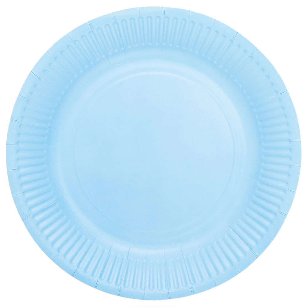 Papperstallrikar Ljusblå 23 cm 8-pack består av åtta papperstallrikar i ljusblå.