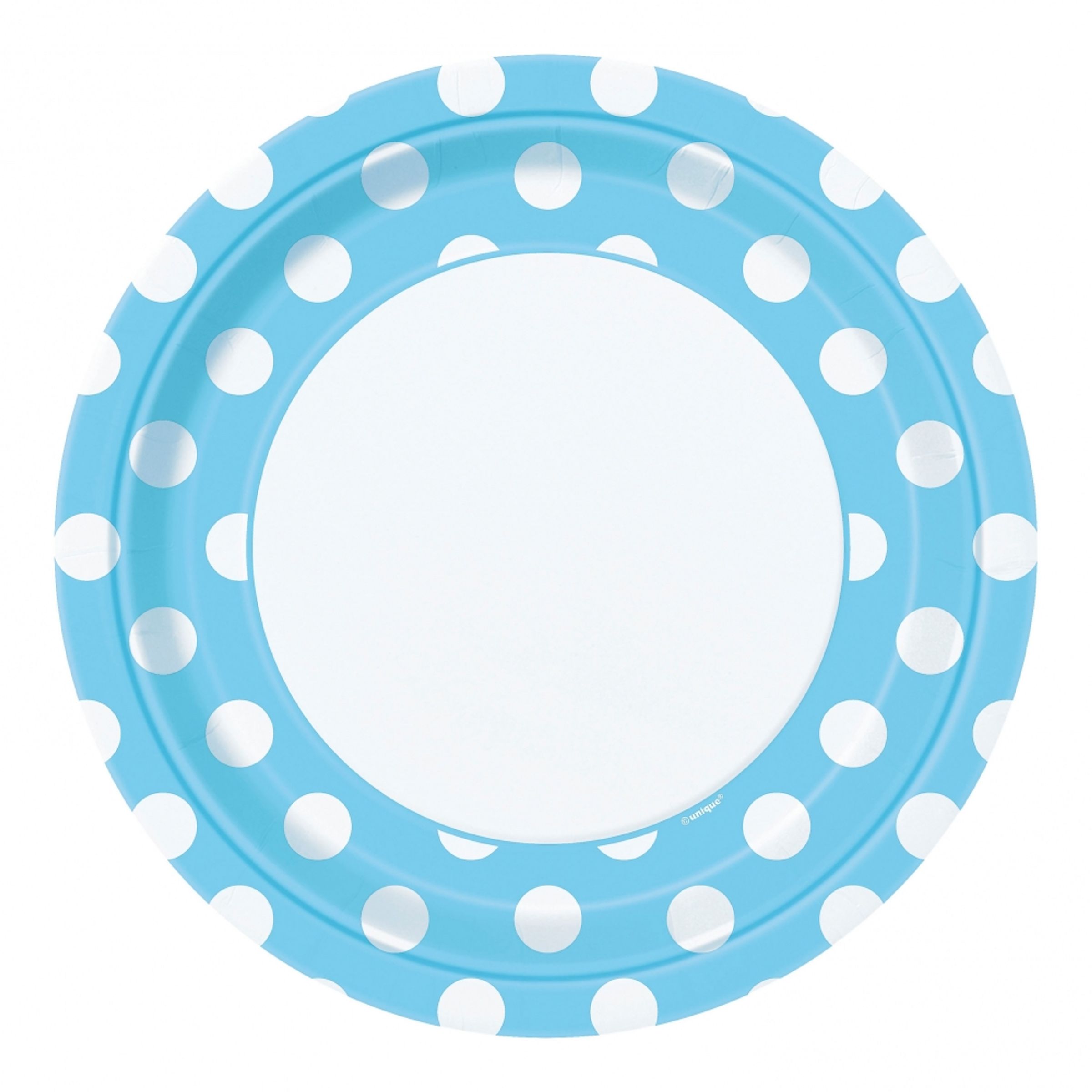 Papperstallrikar Ljusblå Prickiga mäter ca 23 cm stora och levereras i 8-pack.