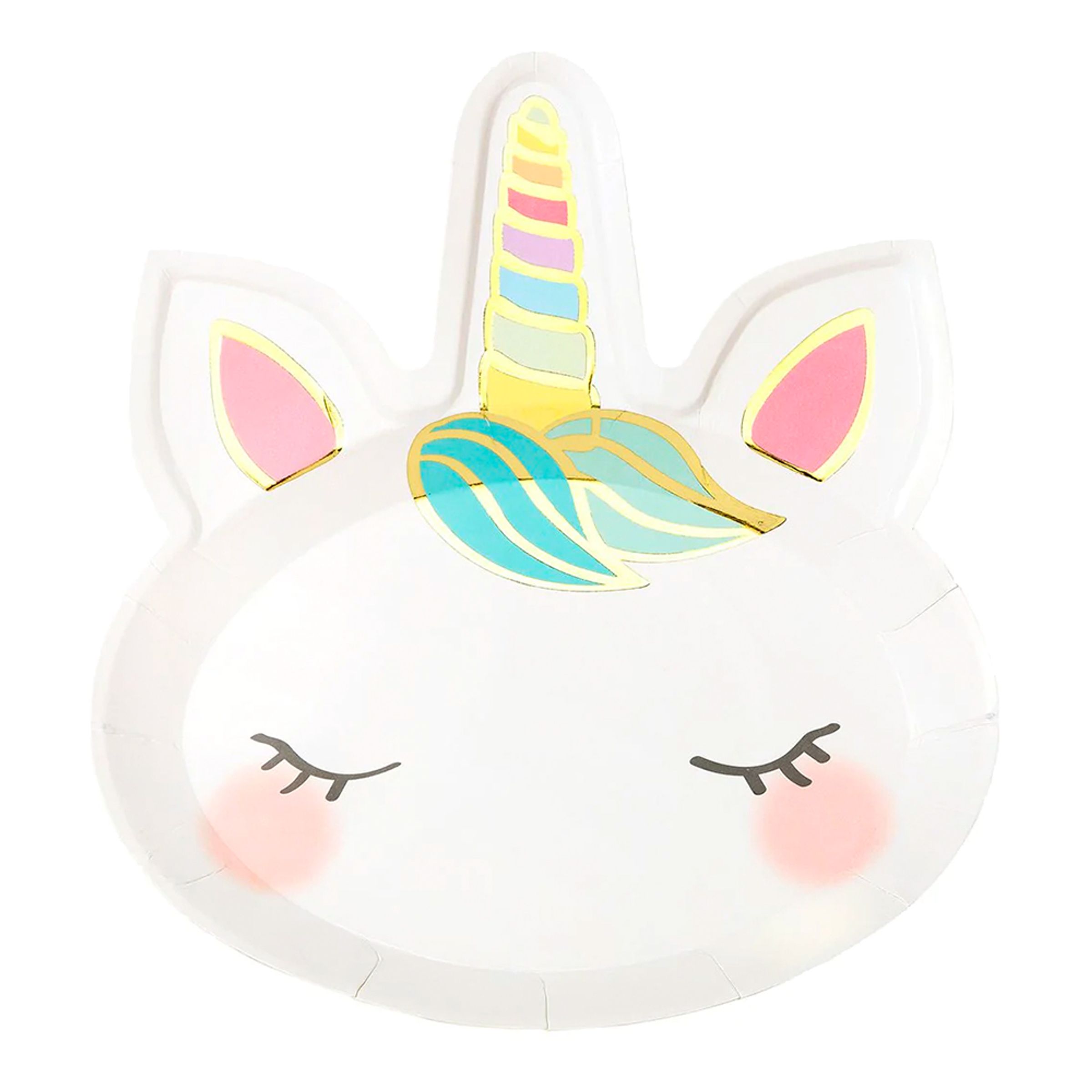 Vem skulle inte vilja äta sockersöta bakelser från dessa sockersöta tallrikar? Dessa enhörningsformade tallrikar kommer garanterat dra upp stämningen på kalaset. Komplettera med matchande servetter och muggar om du älskar unicorns extra mycket!