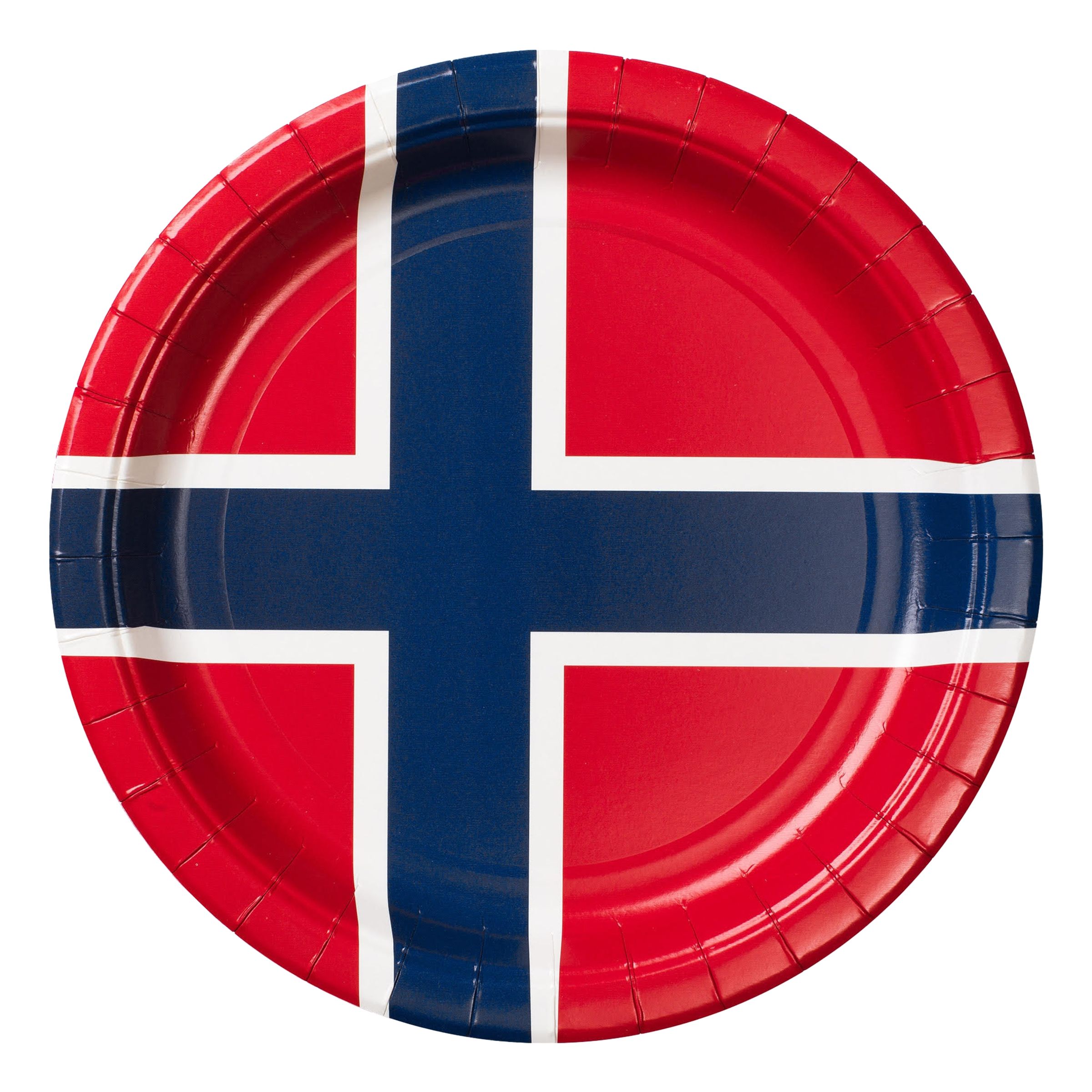 Papperstallrikar Norge är dekorativa engångstallrikar med motiv av den norska flaggan. Använd till russefirandet, 17 maj – eller varför inte när Norge spelar en viktig match?