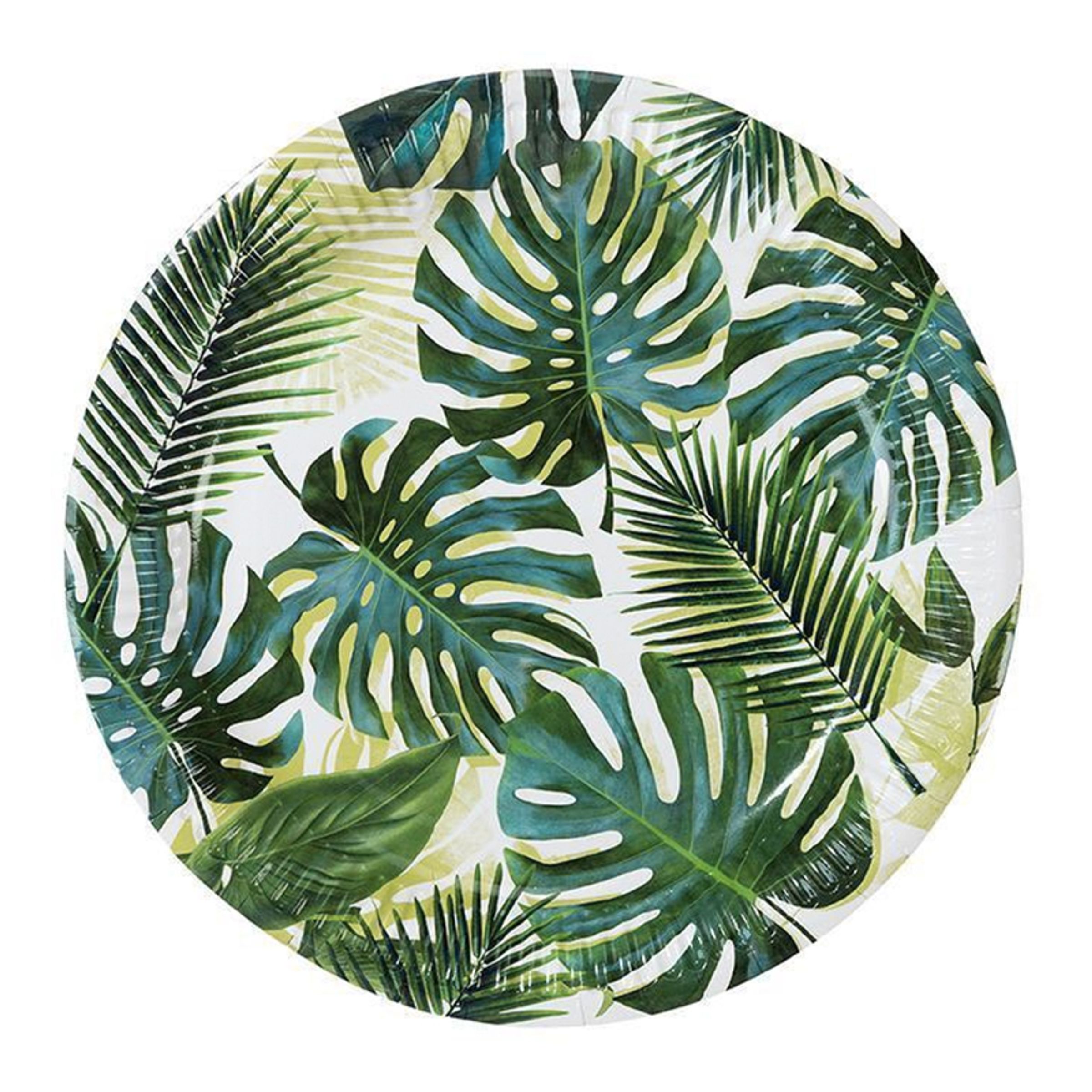 De här fina tallrikarna med stora gröna palmblad blir man glad av! Duka upp ett vacker bord och bjud över dina vänner på en grillkväll eller en sommarfest. Tallrikarna kan även användas på en maskerad med hawaii-eller djungeltema. En stor fördel med tallrikarna är att de är papperstallrikar. Det betyder att när gästerna har gått hem och kalaset är slut slipper du stå med diken.