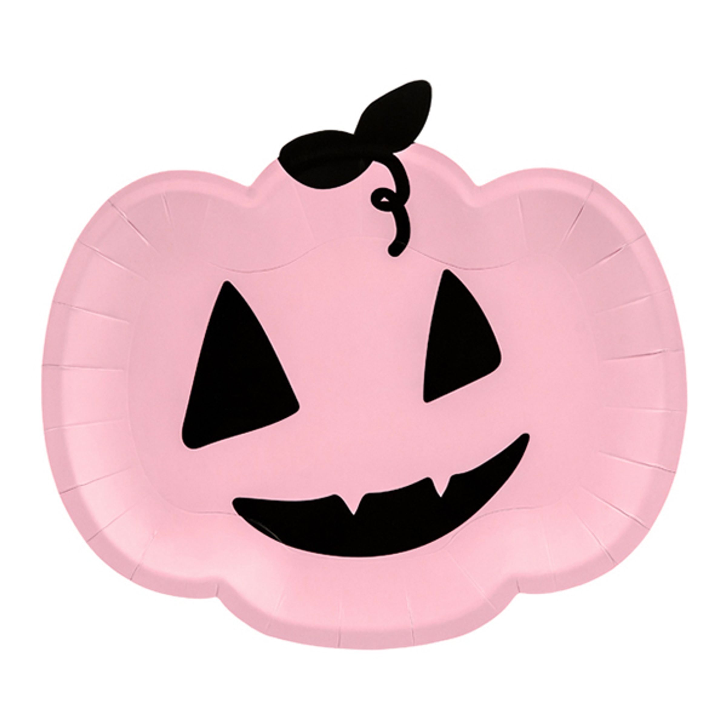 Papperstallrikar Rosa Pumpa Halloween innehåller 6 st rosa pappersassietter i pumpaform som mäter 25×22 cm.