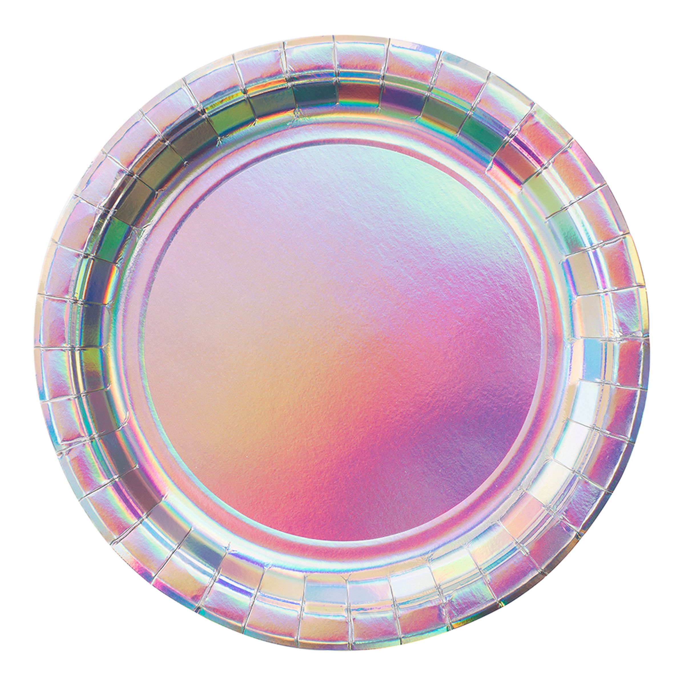 Papperstallrikar Skimrande inkluderar totalt åtta stycken blänkande tallrikar med en iriserande finish. Tallrikarna passar utmärkt att matcha med annan dukning ur samma serie.