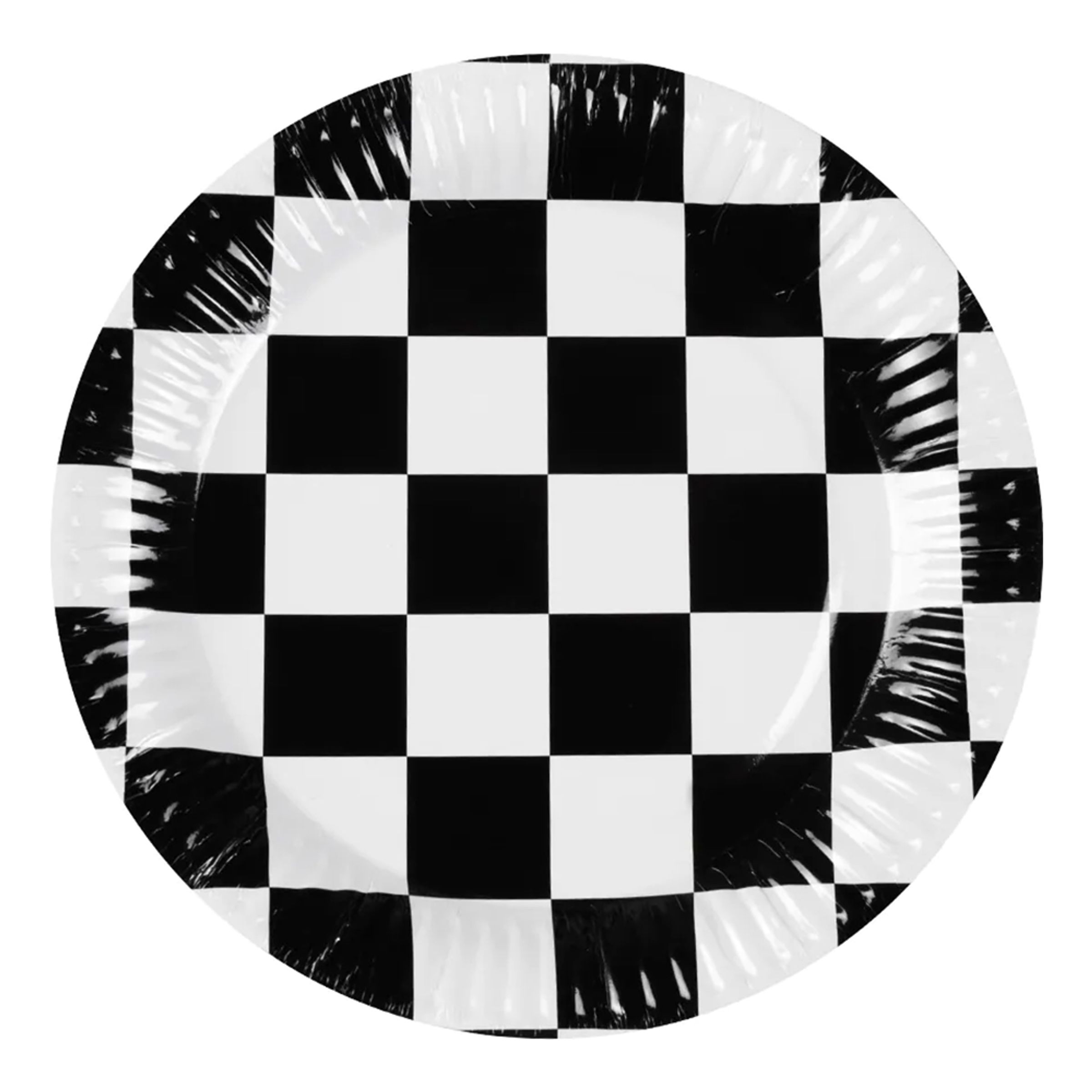 Papperstallrikar Svart/Vit Rutiga – 10-pack