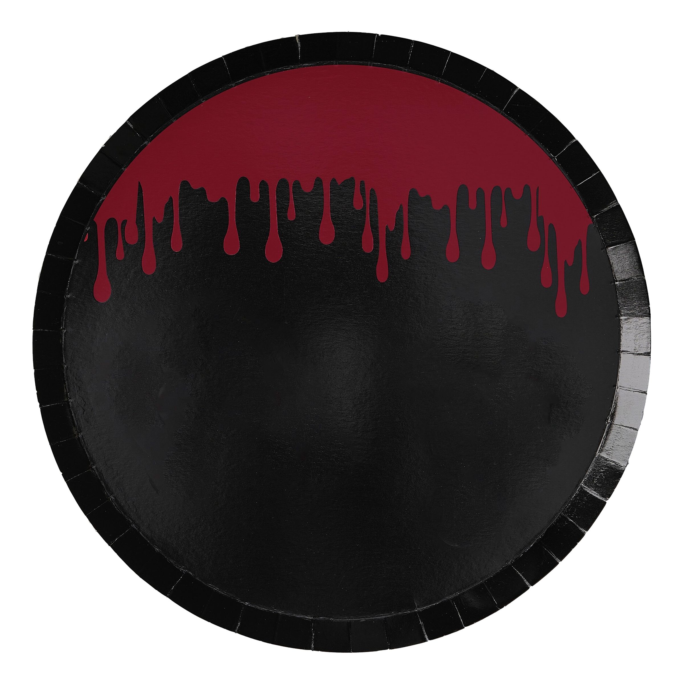 Papperstallrikar Svarta med Rinnande Blod innehåller 8 runda papperstallrikar i färgen svart och motiv av rinnande blod! Perfekt för en halloweenfest eller ett barnkalas!