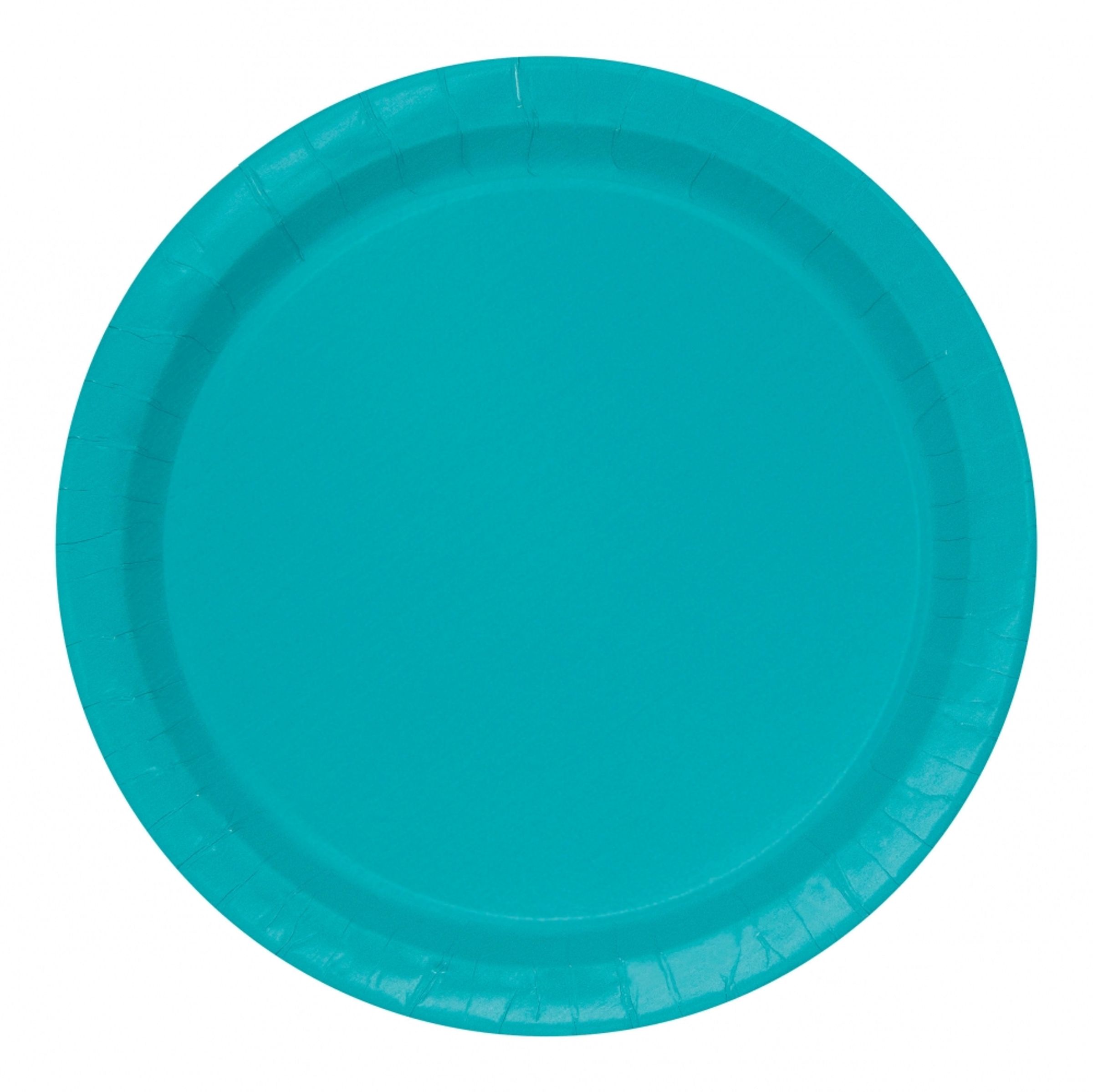 Papperstallrikar Turkosa runda turkosa engångstallrikar. De mäter cirka 23 cm tvärs över.
