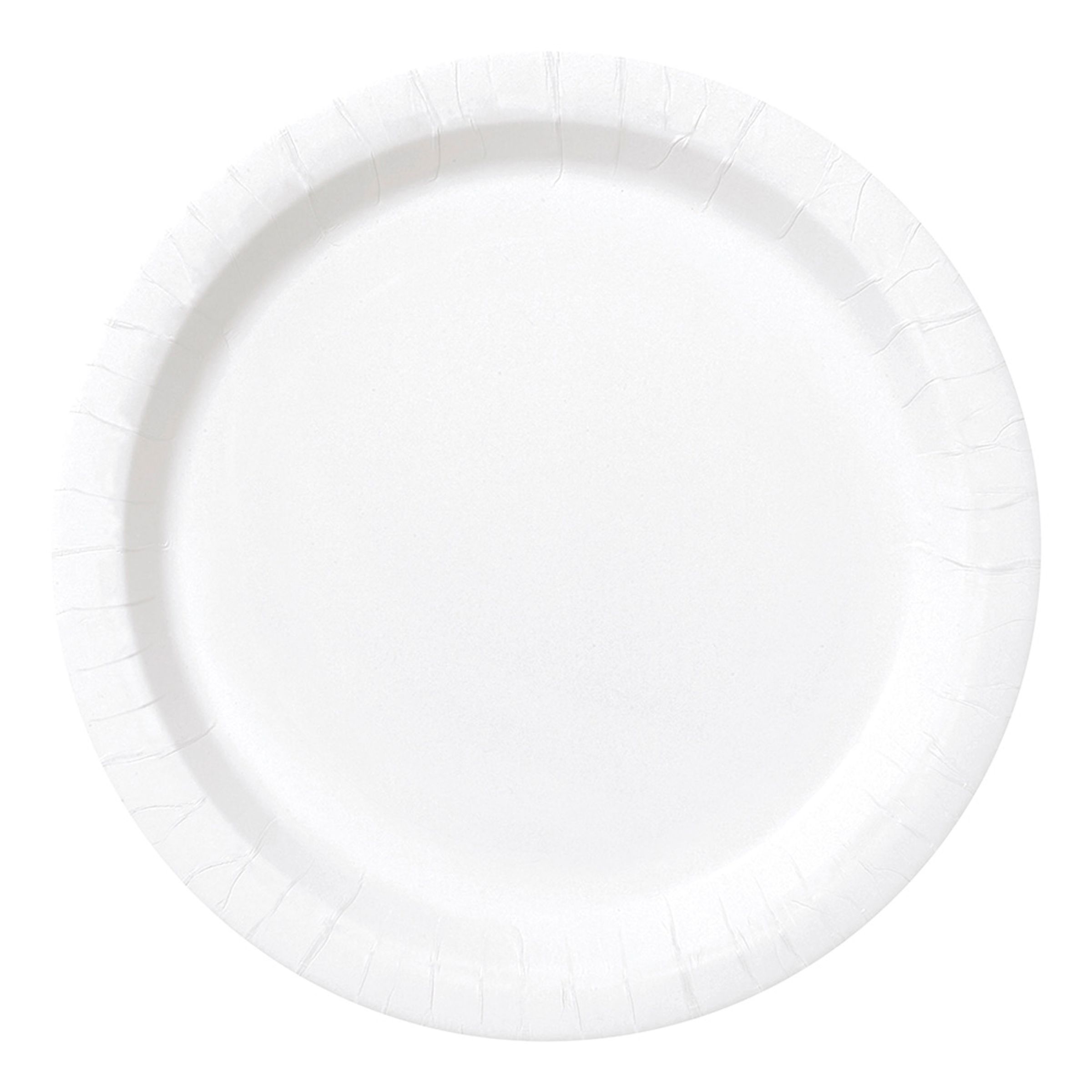 Klassiska vita papperstallrikar av hög kvalitet. Utmärkta tallrikar som är lätta att matcha med övrig dukning för en mysig dekoration på kalaset eller festen!