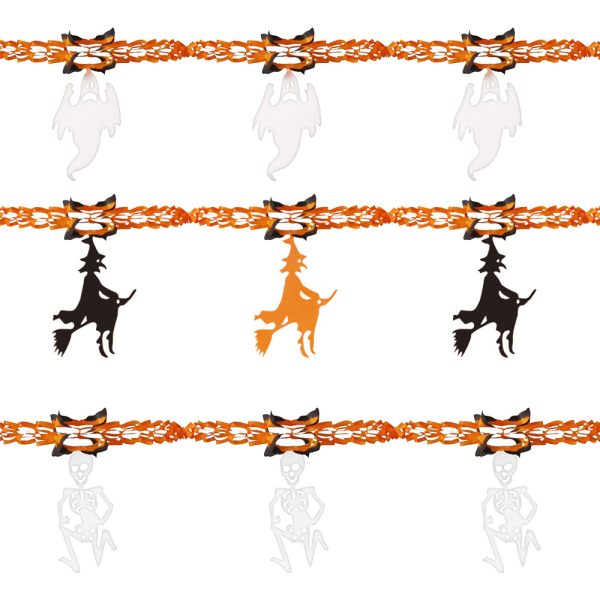 Festlig halloween girlang för alla som vill dekorera riktigt fint! Med denna halloween girlang får du enkelt till ett stämningshöjande pynt som passar perfekt in på vilken halloweenfest som helst. Helt enkelt ett utmärkt halloween pynt för alla som vill bjuda in till ett klassiskt halloween firande!