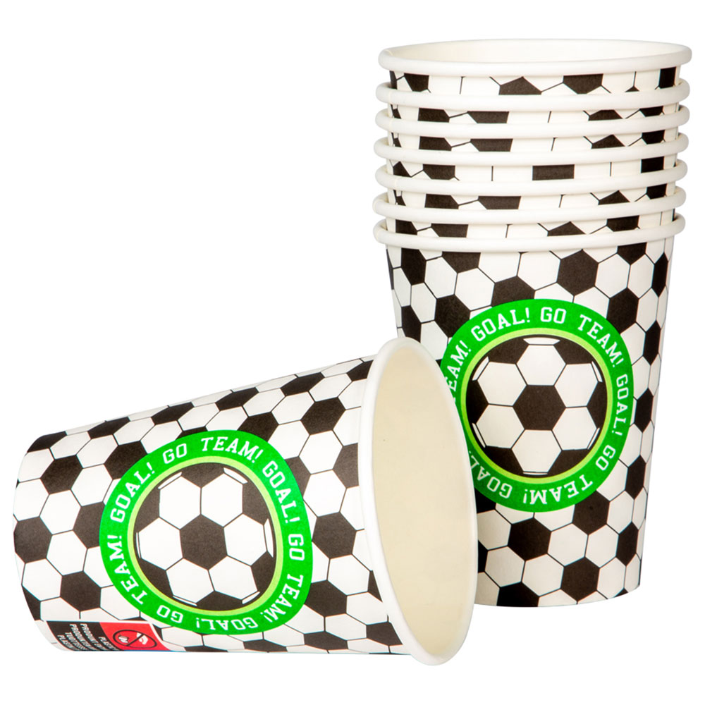 Festliga engångsmuggar för varje barnkalas i fotbollstema. Med dessa pappmuggar får du enkelt till en riktigt snygg kalasdukning till ditt fotbollskalas. Riktigt fina engångsmuggar som enkelt matchas med andra dukningstillbehör för en komplett och riktigt stämningshöjande fotbollsdukning.