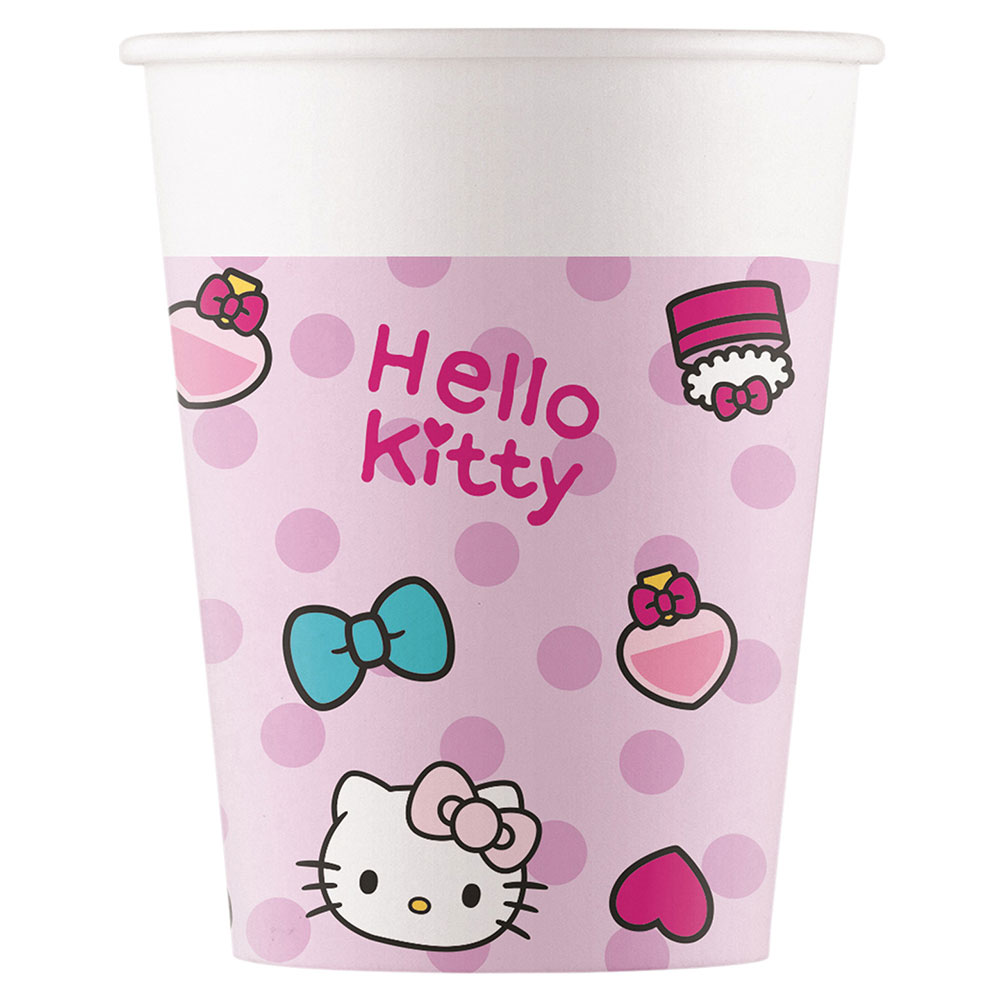 Pappmuggar Hello Kitty Fashion Stylish omfattar 8 st rosa engångsmuggar med Hello Kitty motiv. Muggarna är i papp och rymmer 200 ml vardera.