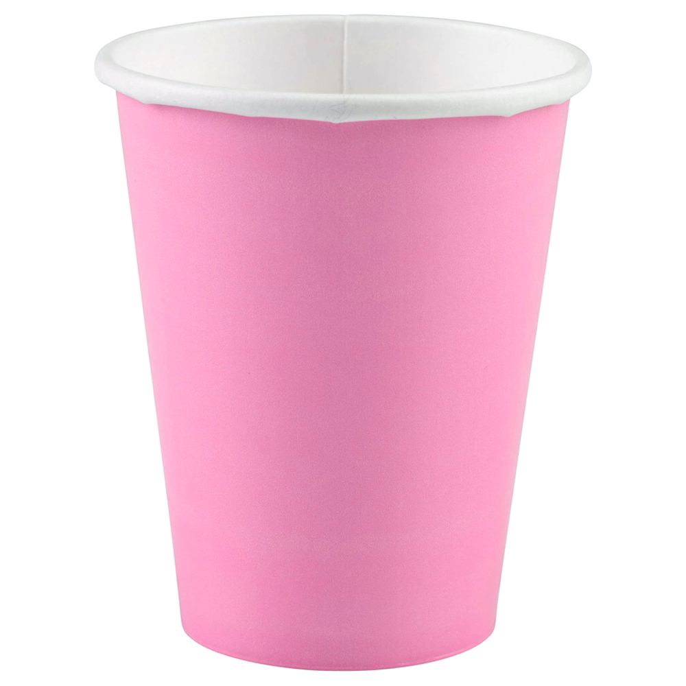 Pappmuggar Rosa omfattar ett 8-pack ljusrosa pappersmuggar med vit insida. Muggarna rymmer ca 250 ml och är ca 8,5 cm höga.