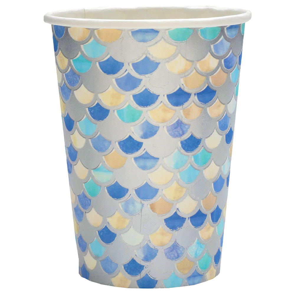 Fantastiska engångsmuggar för varje mermaid kalas! Med sitt regnbågsskimrande mönster av sjöjungfrufjäll blir dessa pappersmuggar ett utmärkt komplement till barnkalaset i sjöjungfru-tema. Duka upp med matchande tillbehör och få till ett komplett sjöjungfrukalas på nolltid.