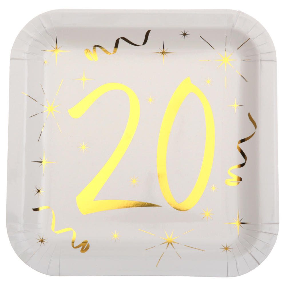 Önskar du en tjusig dukning till din 20-års födelsedag så är dessa fina engångstallrikar precis vad du behöver! Läckra papptallrikar som passar helt perfekt för dig som vill duka fram en stilfull dukning i vitt och guld inför din födelsedag. Komplettera med matchande tillbehör och få till en fulländad dukning på nolltid.