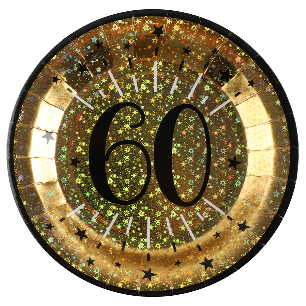 En snygg födelsedagsdukning i skimrande guld kan utlovas med dessa fina 60-års tallrikar nära till hands! Med dessa 60-års tallrikar kan du snabbt och smidigt duka upp en riktigt tjusig guld-dukning inför din födelsedag. Ett perfekt val för dig som önskar en skimrande dukning i guld till din 60-års fest.
