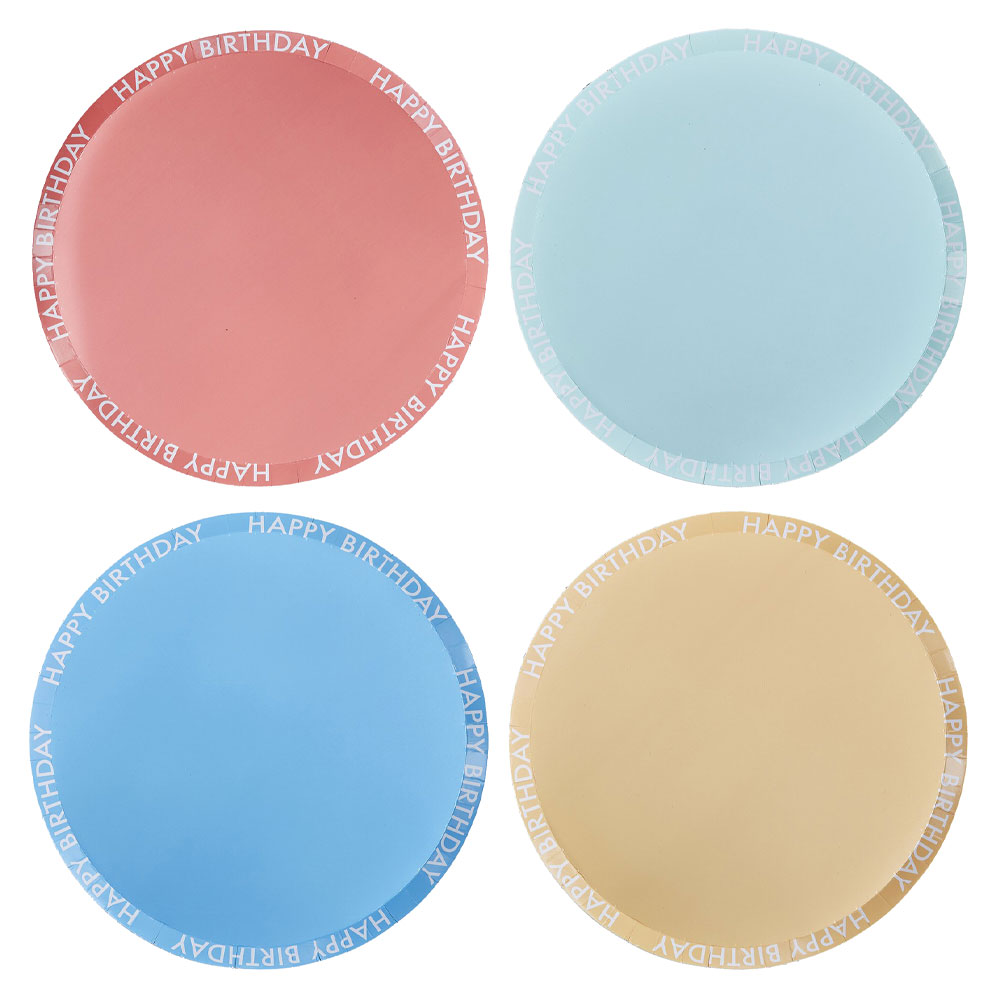 Det kan aldrig bli för mycket färg på ett födelsedagskalas! Addera en härlig färgklick till din födelsedags-dukning med dessa happy birthday papptallrikar i flera olika färger. Med en härlig färgkombo av blått, mintgrönt, rött och gult kommer dessa engångstallrikar utan tvekan att liva upp hela kalasbordet. Helt enkelt perfekt för dig som önskar en riktigt färgsprakande dukning till nästa födelsedag.