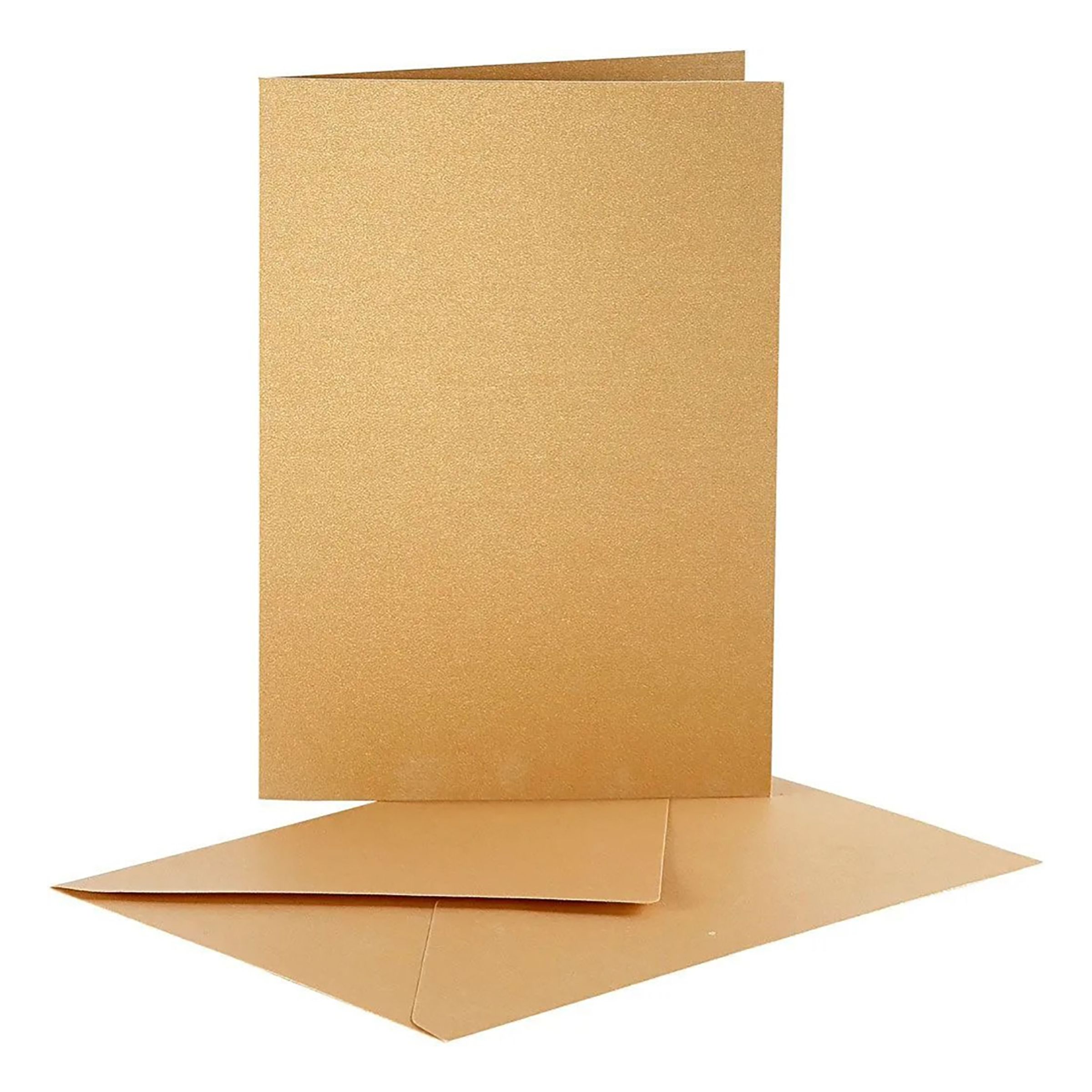 Pärlemorskort med Kuvert Guld inkluderar tio vikta guldiga kort med matchande kuvert. Korten öppnas på mitten och kommer med en exklusiv pärlemorsyta.