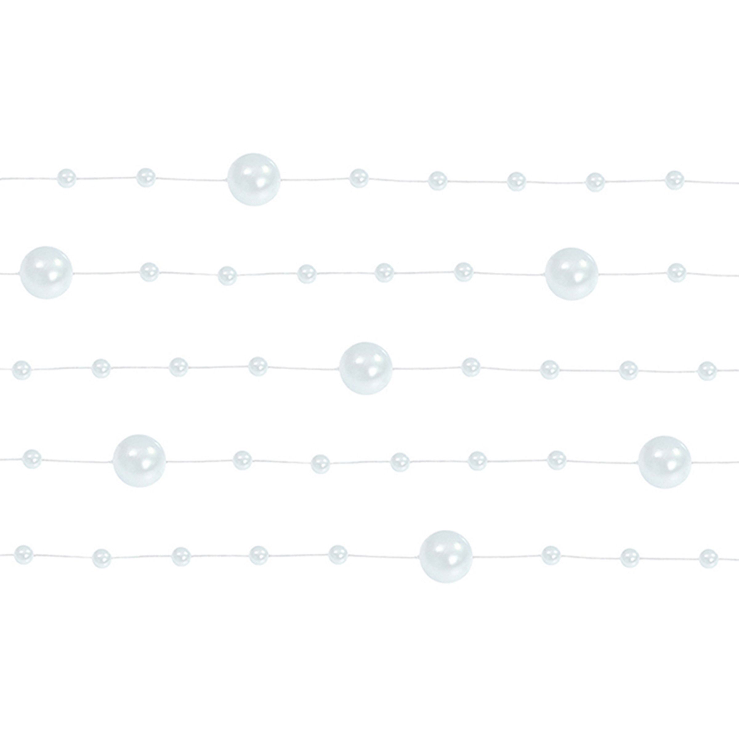 Pärlgirlang Pärlvit inkluderar fem stycken längor – samtliga mäter 130 cm långa. Häng enkelt upp dem på väggen eller dylikt med exempelvis lite tejp. Passar till alla slags fester och kalas.