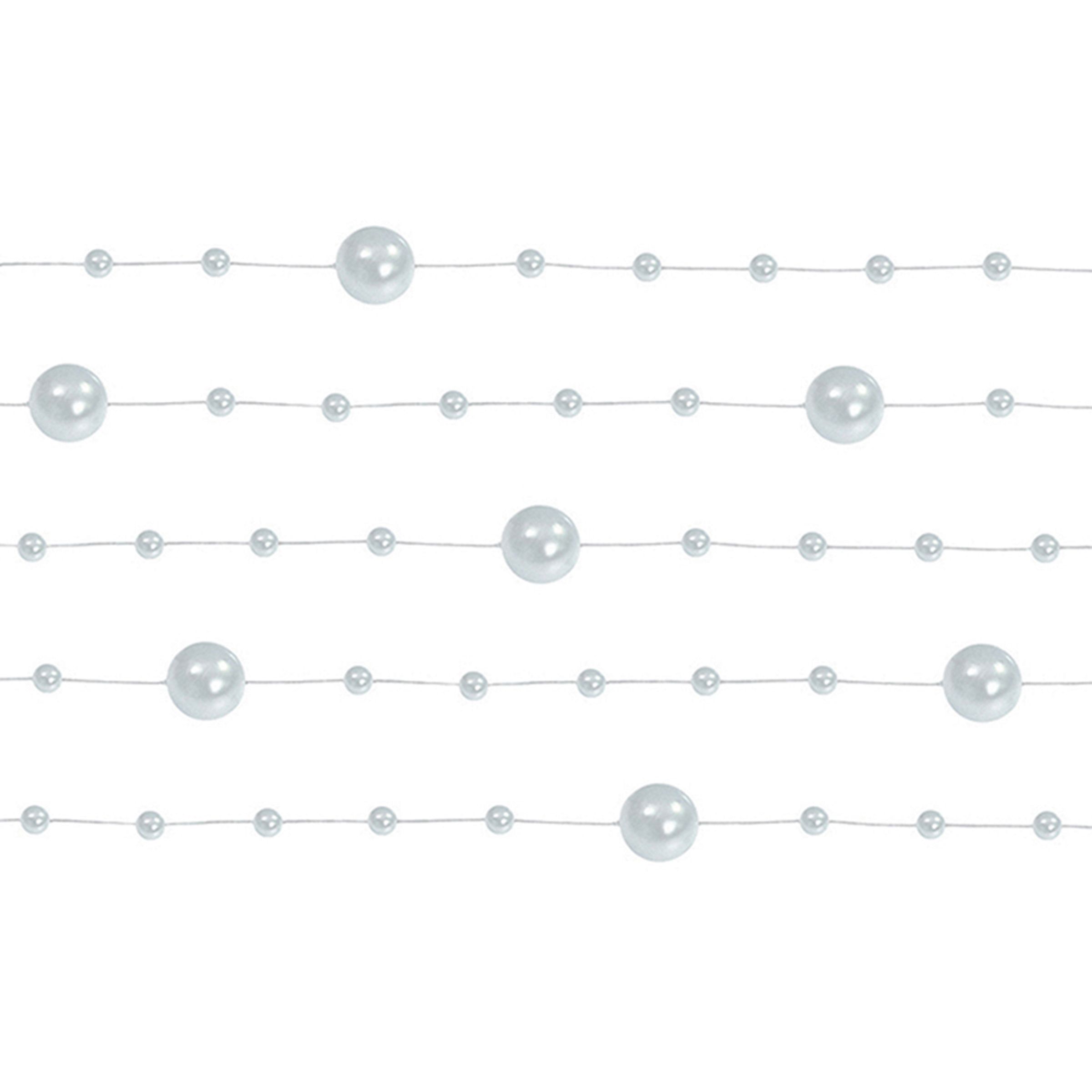 Pärlgirlang Silver inkluderar fem stycken längor – samtliga mäter 130 cm långa. Häng enkelt upp dem på väggen eller dylikt med exempelvis lite tejp. Passar till alla slags fester och kalas.