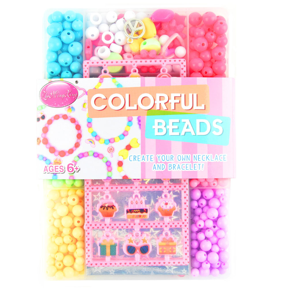 Pärlor DIY Armband Set består av ett set med flera olika slags pärlor och trådar i förvaringslåda. Rekommenderas från 6 års ålder.