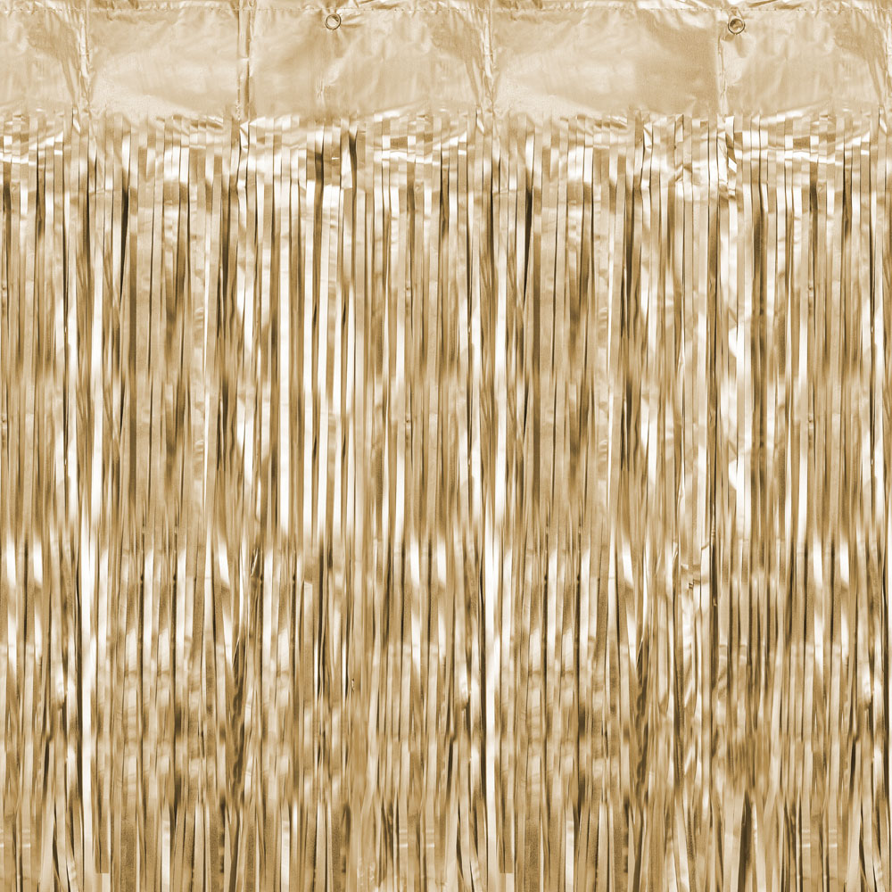 Party Draperi Guld innehåller ett skimrande draperi i guld med långa fransar.