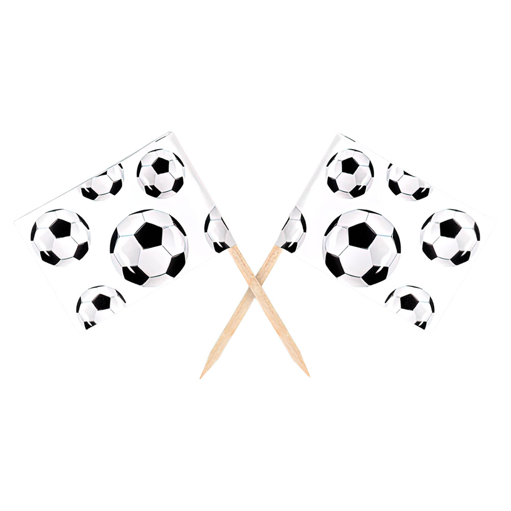 När det är dags för fotboll är det ganska vanligt att vifta med flaggor, dessa små partypicks blir därför perfekta för festen eller kalaset med samma tema! Dessa cocktailpinnar blir perfekta att sätta på tårtan, cupcakes eller maten! Du kan till och med använda dom till ost och grönsaker om du ska ha en lite mer vuxen fotbollsfest.