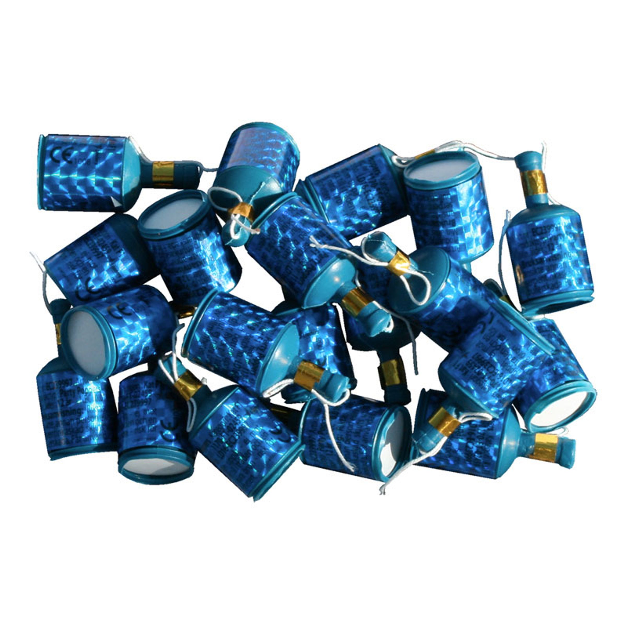 Partypoppers Blå är ett paket med 20 stycken klassiska partypoppers som du enkelt avfyrar med hjälp av ett snöre i ena änden. De skjuter då ut serpentiner av papper med en smäll.