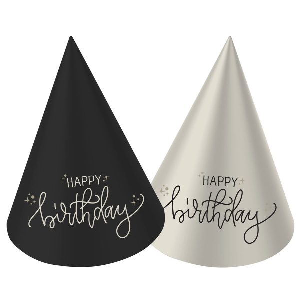 Info om Partyhattar Happy Birthday Svart/Krämvit 6-pack: