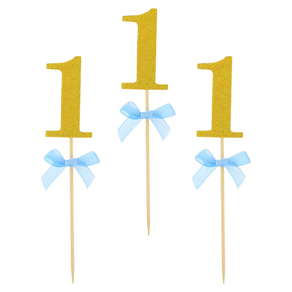 Festliga partypicks till ettårskalaset! Med de stora guldiga ettorna och de ljusblåa små rosetterna blir dessa partypinnar en perfekt dekoration till varje 1-års firande. Sätt ner dem snyggt i dina muffins, cupcakes, tårtor eller plockmat och se hur dem genast får godsakerna att se riktigt proffsiga ut. Perfekta partypinnar till varje 1-års kalas i ljusblått och guld.