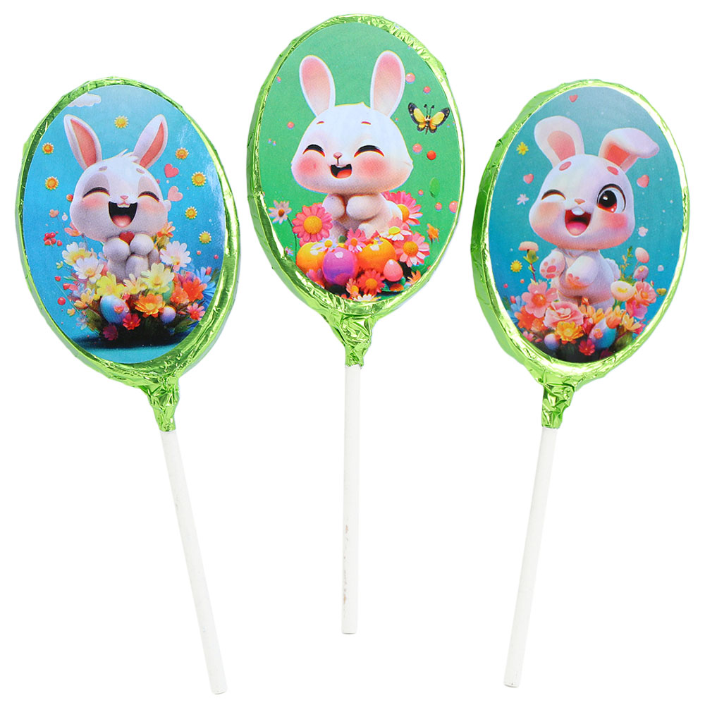 Påsk Chokladklubba omfattar en klubba med 30 gram choklad i grönt folie med ett sött påskhare motiv.